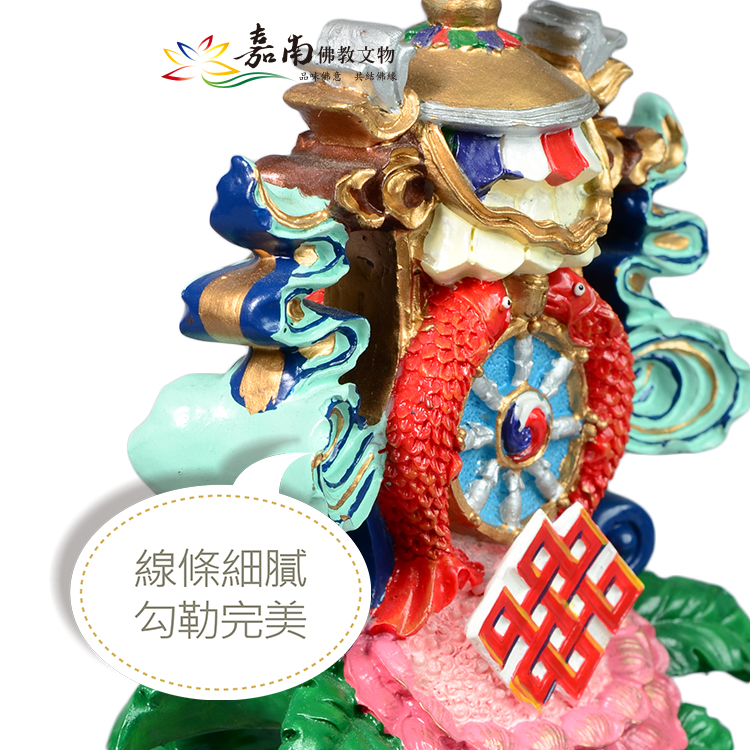 彩色八吉祥總集為波麗材質製成,質輕便攜,擺放穩固。立體浮雕圖樣,線條細膩,顏色鮮明,光澤華美,共有三種尺寸可供選擇,自用或送人皆得吉祥如意。