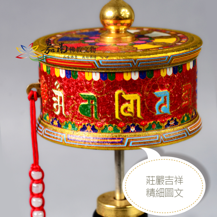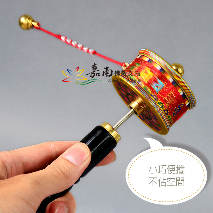 介紹 │ 採用離心力原理製作的手轉經輪,以拇指和食指即可持轉。內含六字大明咒咒語,轉動一次即同等唸誦內含咒語次數。