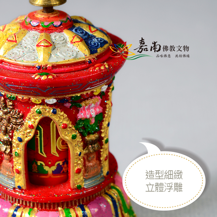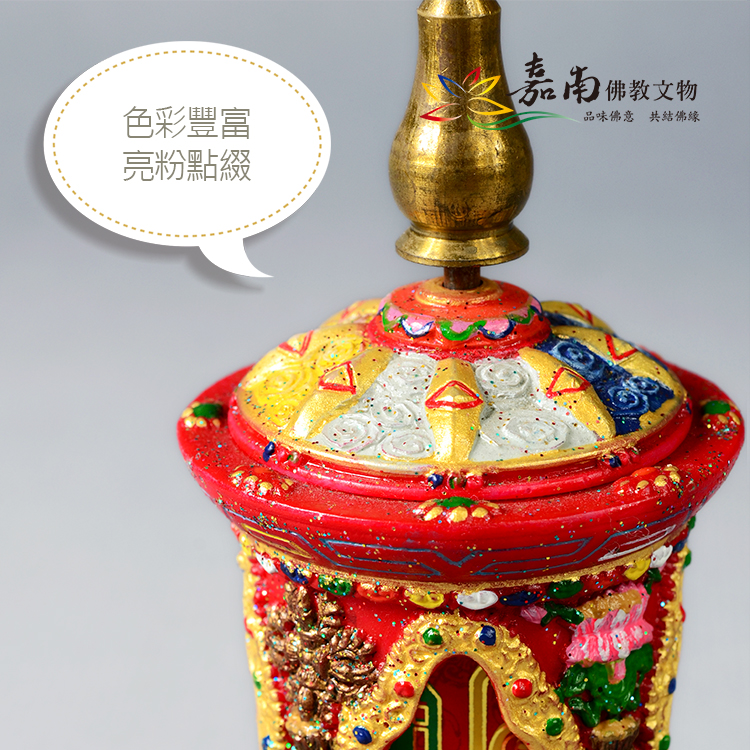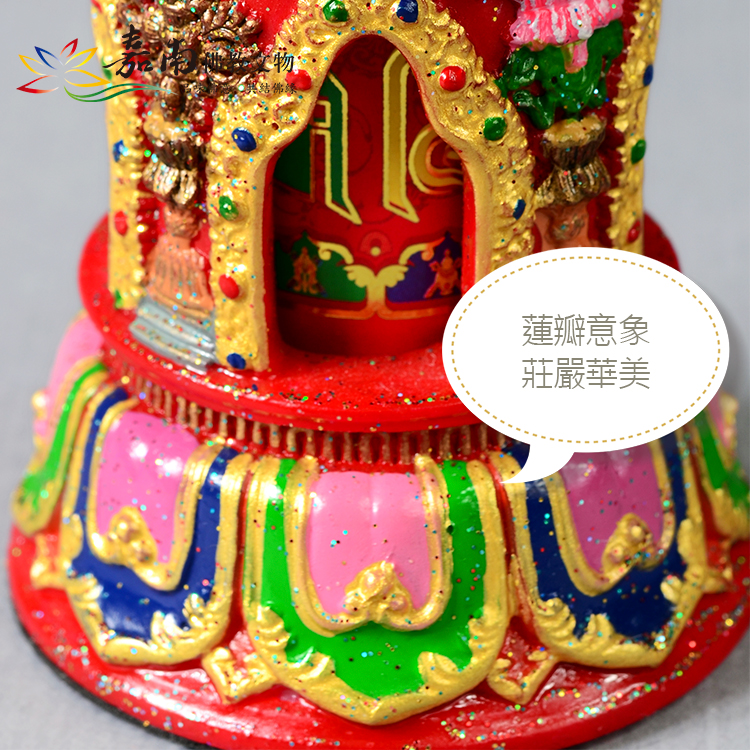 說明 │ 佛經說利用地、水、火、風等法,使經輪轉動,功德無量。轉動經輪,使眾生解脫,為自己帶來好運。