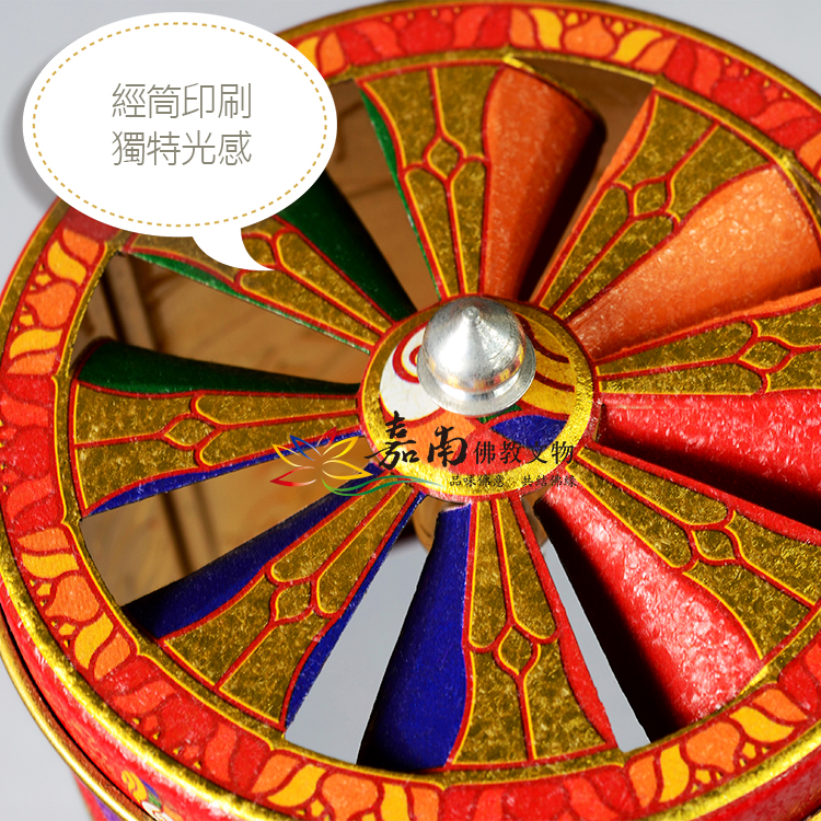說明 │ 佛經說利用地、水、火、風等法,使經輪轉動,功德無量。轉動經輪,使眾生解脫,為自己帶來好運。
