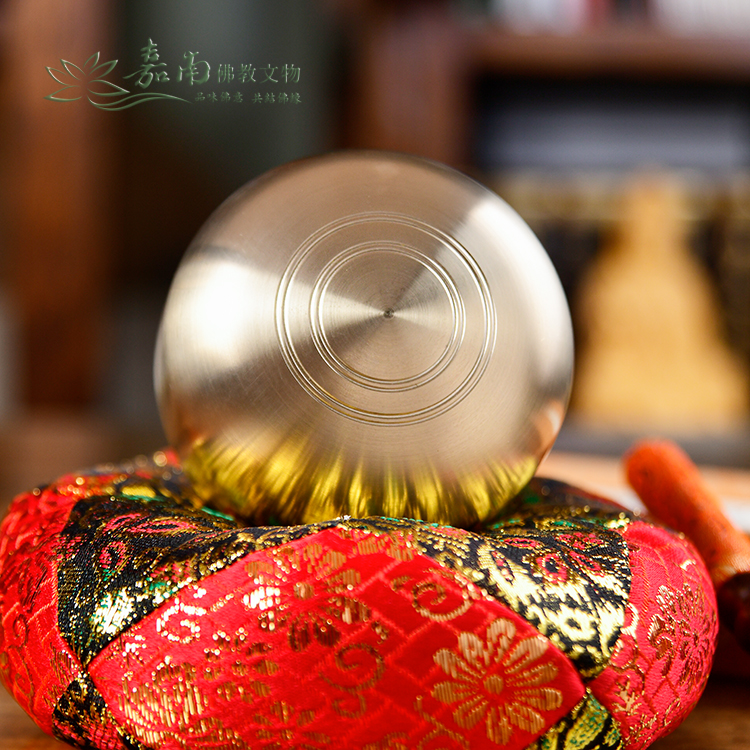 銅罄採用優質銅材料(響銅)精心打制而成,罄的外觀與缽相似,口和底一樣大,中間向外凸出,底部邊緣和口的邊緣都為金色,罄身有黑色、紅色和金色三種,表面上有圖案或者紋路裝飾,罄還配有一根打擊的棒子。