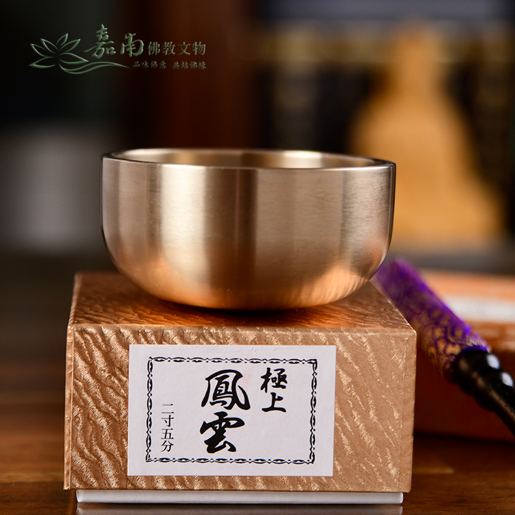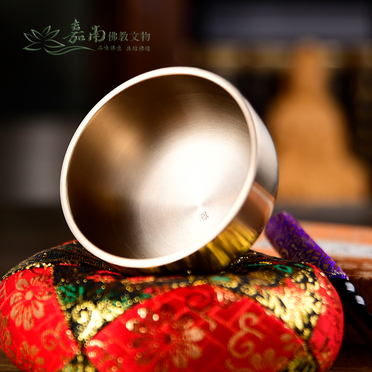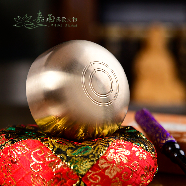 銅罄採用優質銅材料(響銅)精心打制而成,罄的外觀與缽相似,口和底一樣大,中間向外凸出,底部邊緣和口的邊緣都為金色,罄身有黑色、紅色和金色三種,表面上有圖案或者紋路裝飾,罄還配有一根打擊的棒子。