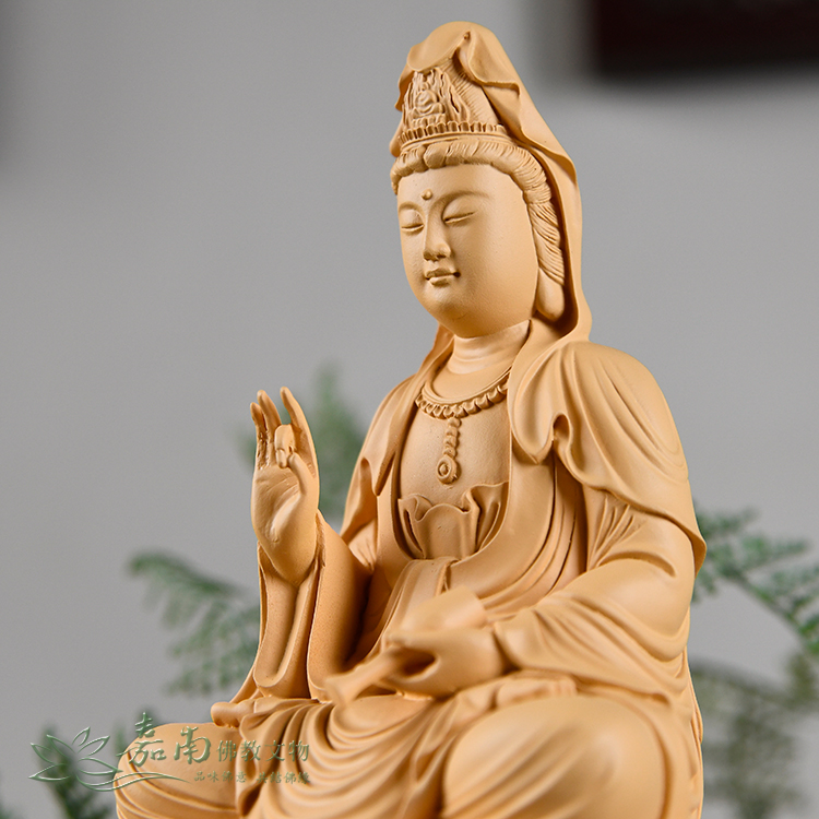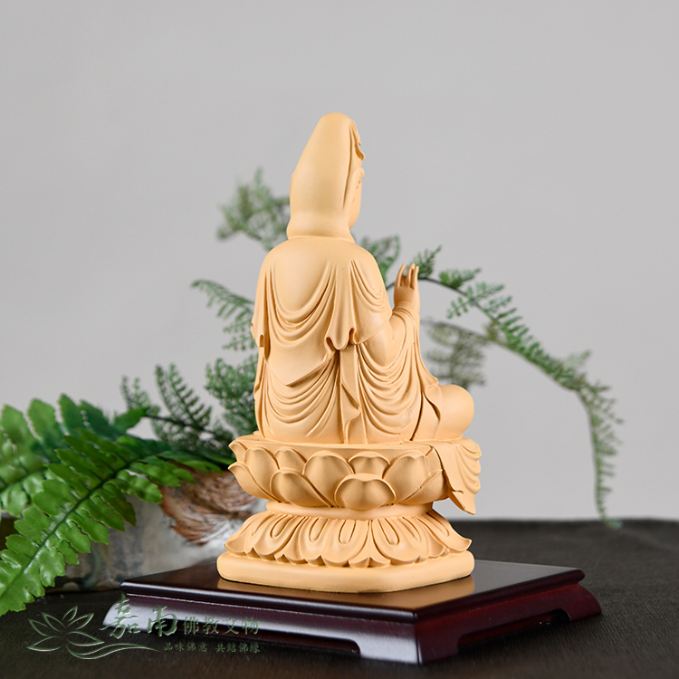 坐姿觀世音菩薩-原木色波麗佛像(6寸4)