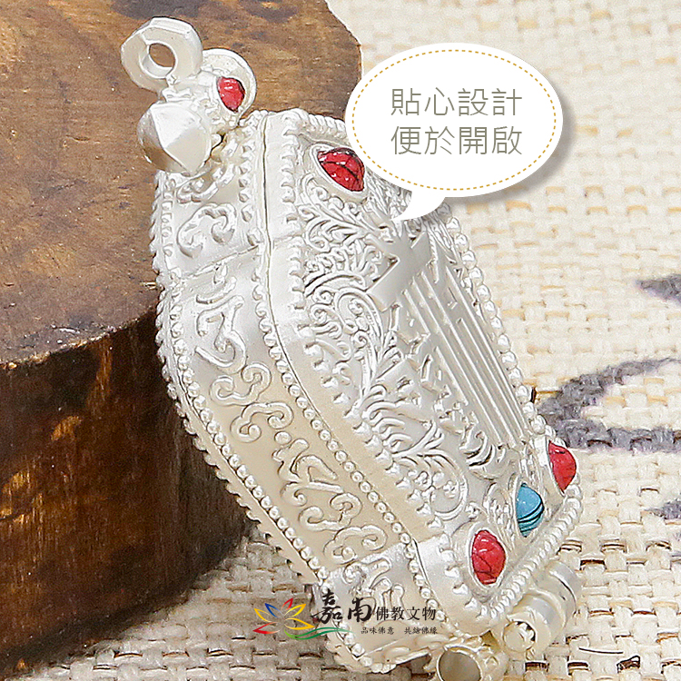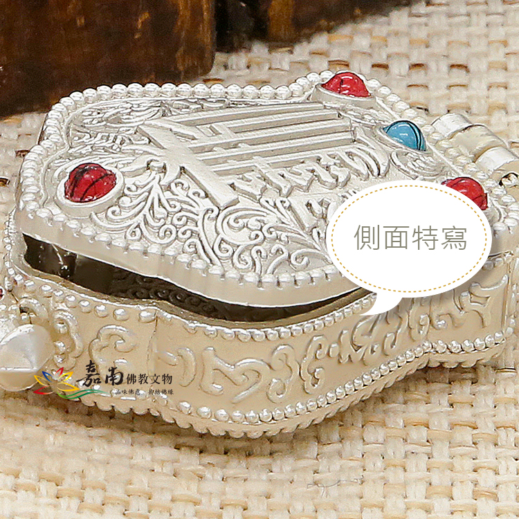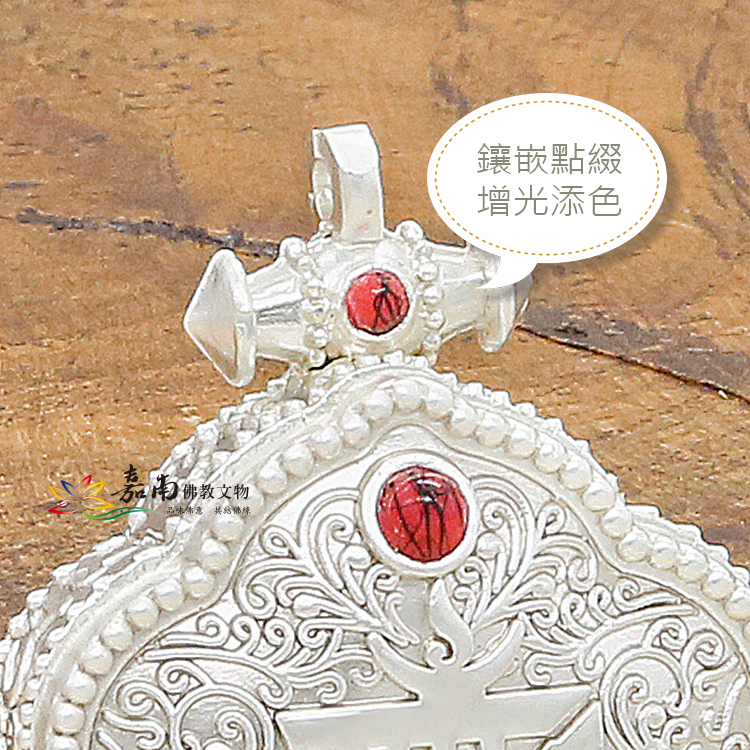 銀為佛教七寶之一,色潔白,據說有辟邪除穢,淨化磁場功用,亦為榮華富貴的象徵,自古即有佩戴銀製飾品,用以祈願平安的說法。