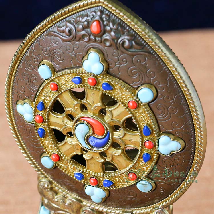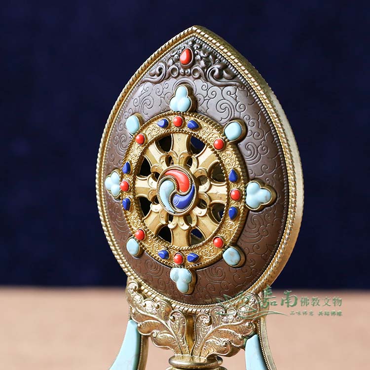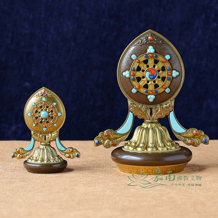 說明 │ 法輪☸(梵語:धर्मचक्र Dhammacakka)為藏傳佛教的一種象徵標誌,在國內外廣泛應用,可作畫、雕塑,也可用於建築。在古印度,輪是一種堅硬無比、鋒利的圓形武器,也很名貴。梵天獻此武器,後人便將武器能摧破敵眾引申為摧破煩惱等障;輪轉動不停,引申為佛法的傳播永不停息,並有堅固永恆之意。