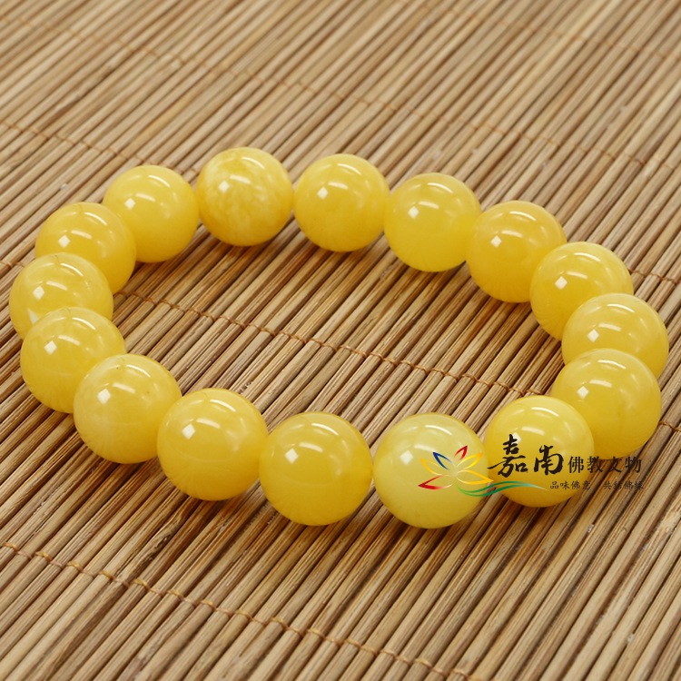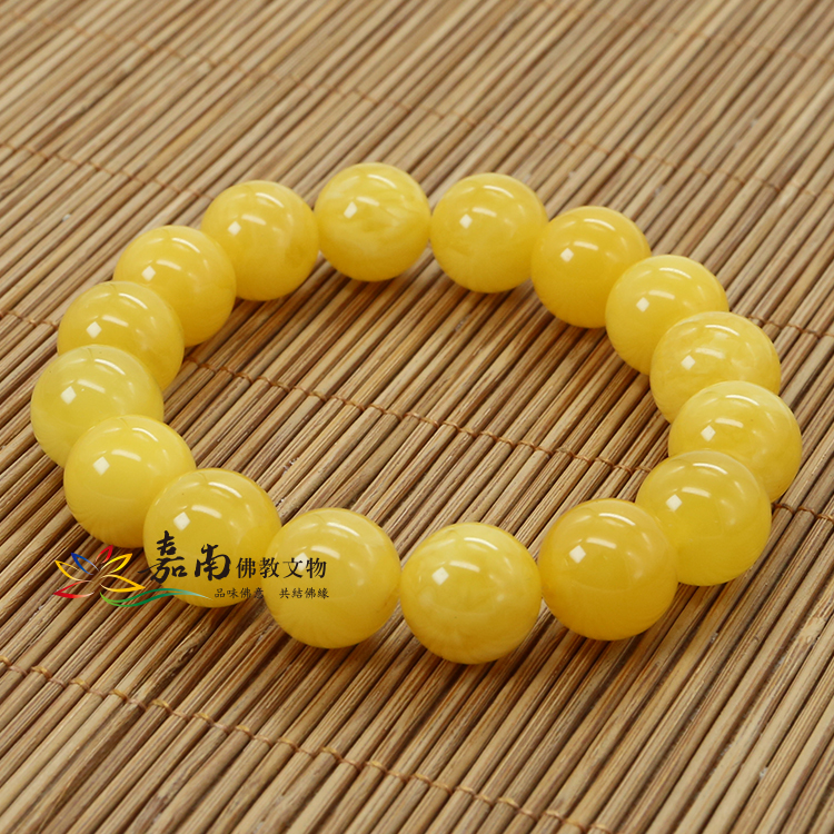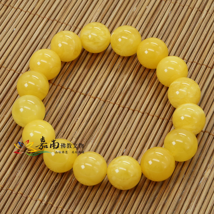 天然蜜蠟手珠-鵝黃色(12mm)