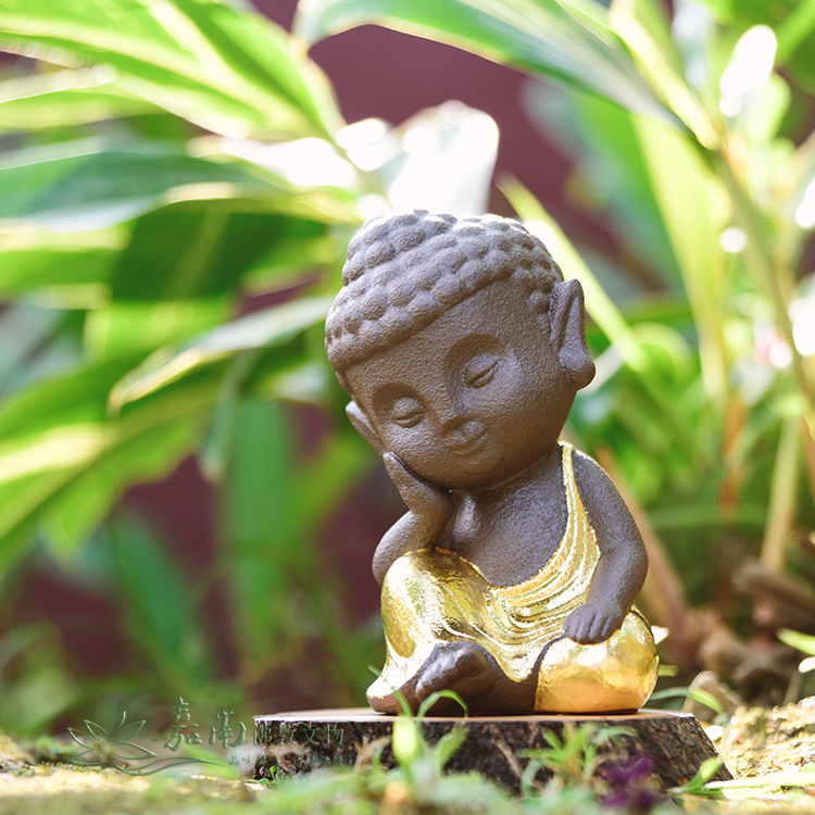 水天需雕塑佛像│靜思-清心小菩薩 含底座(黃金版)