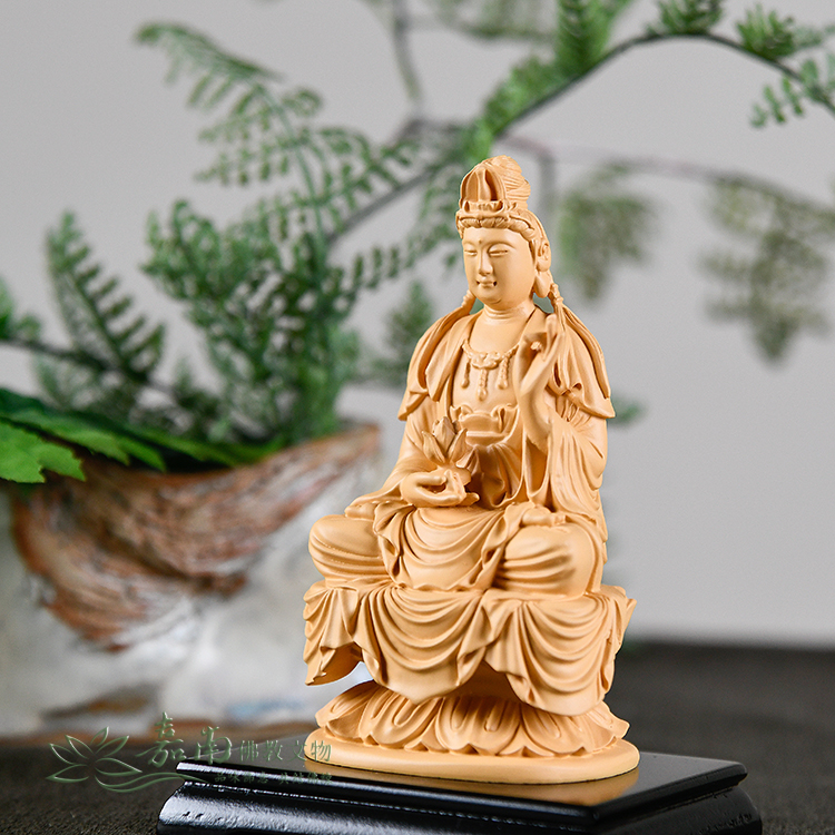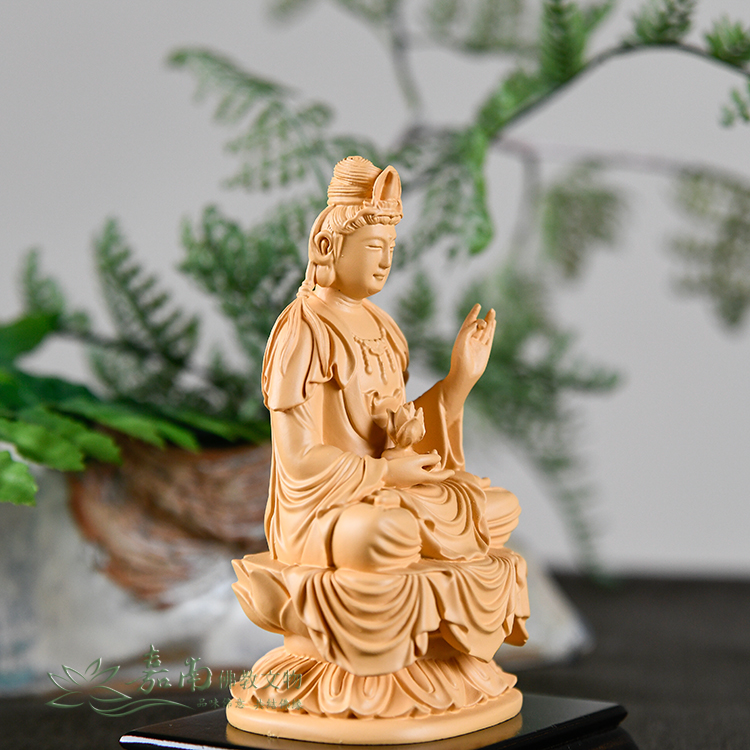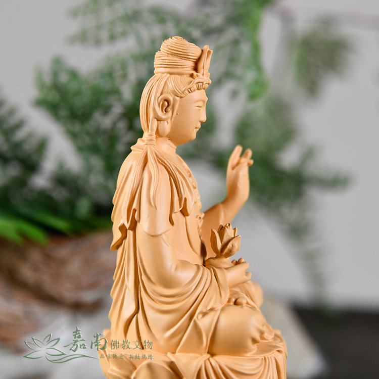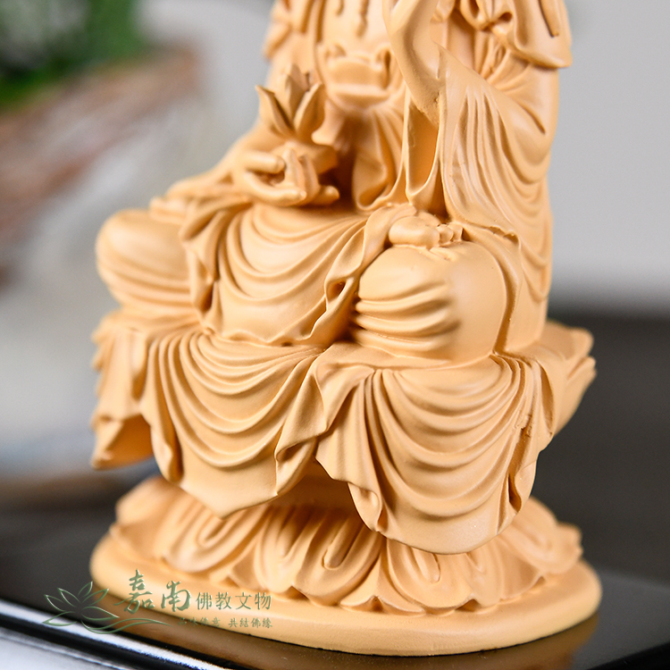 坐姿大勢至菩薩-原木色波麗佛像(3寸)