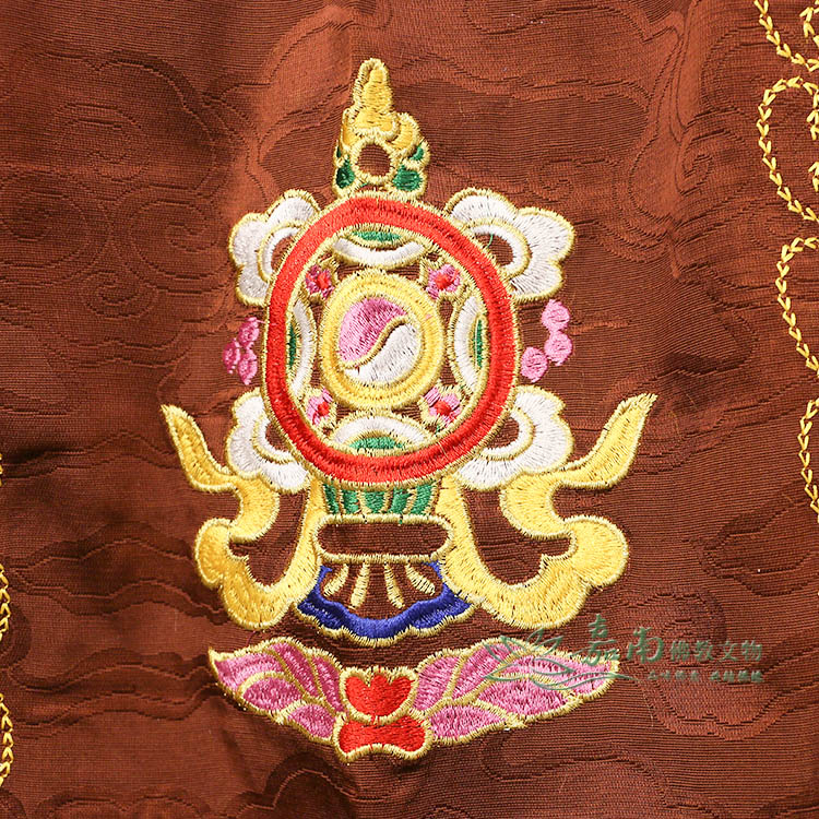 ● 寶瓶-象徵「教法」 寶瓶的形狀像佛的頸子,寶瓶中充滿甘露,代表佛口中不斷的說法利益眾生。 蓮花-象徵「出世間法」 代表佛的舌頭,佛在說法時流利順暢燦爛,宛如金蓮。蓮花也表示神聖純潔,是拒絕汙染的象徵。
