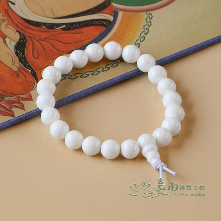 特色 │選用天然硨磲玉製成,圓珠設計,潔白如玉,象徵純淨與慈悲。佛教七寶之一,歷來被視為護身之石,適合修行人與信眾日常佩戴