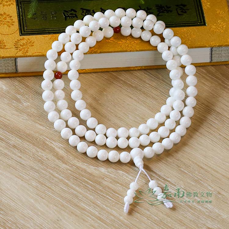 特色 │天然硨磲念珠,108顆潔白溫潤,象徵慈悲與清淨,為佛門七寶之一。適合持誦、禪修與供養,助您福慧增長、心念專一。