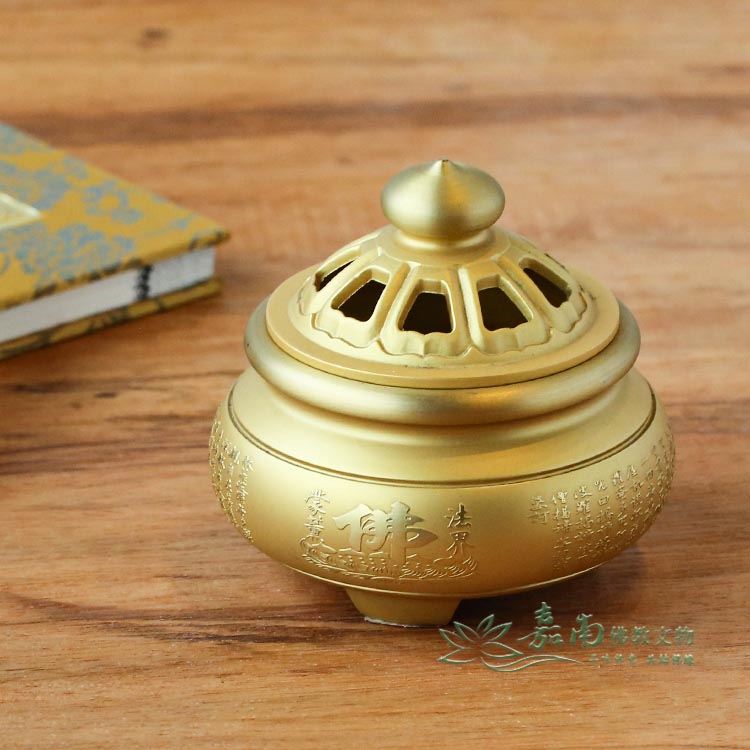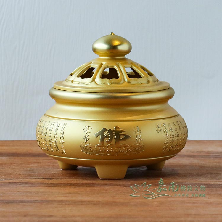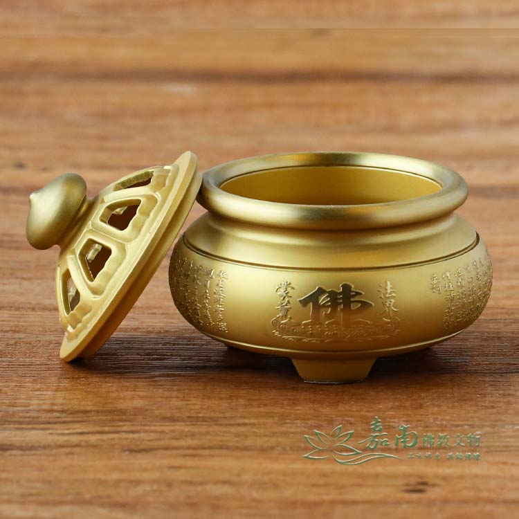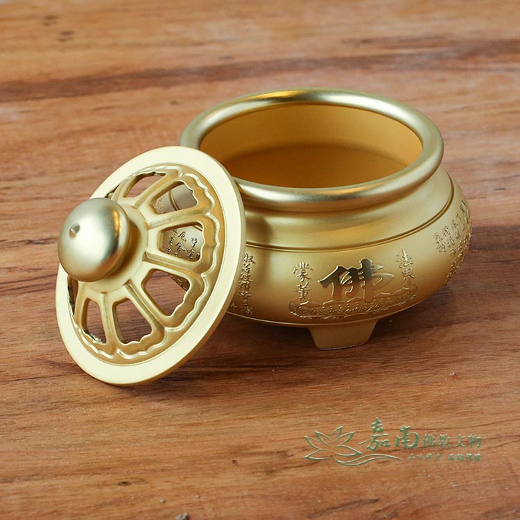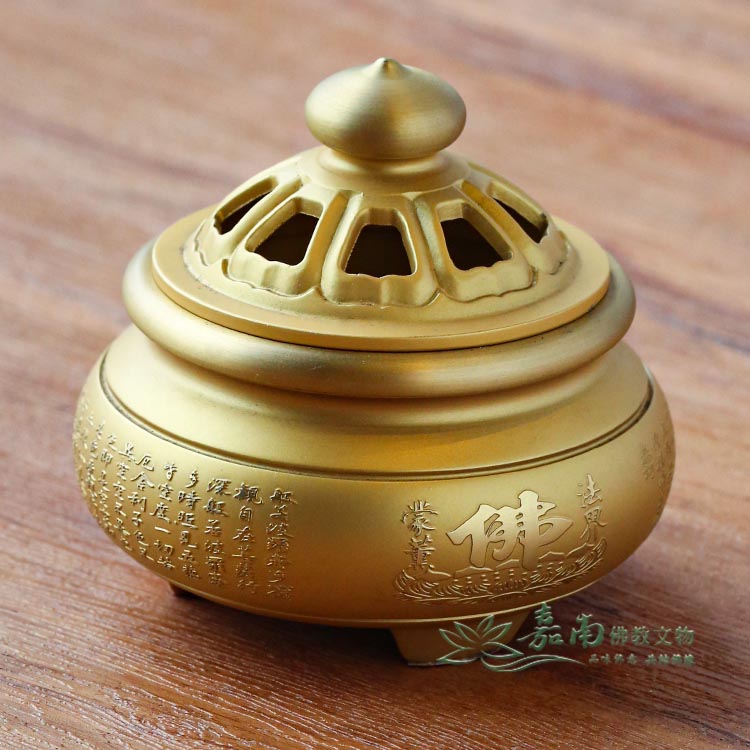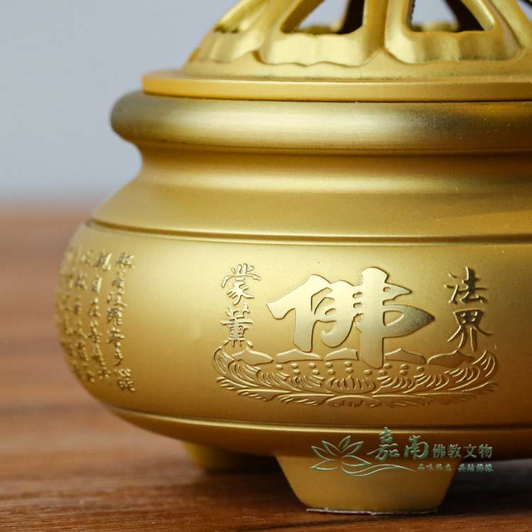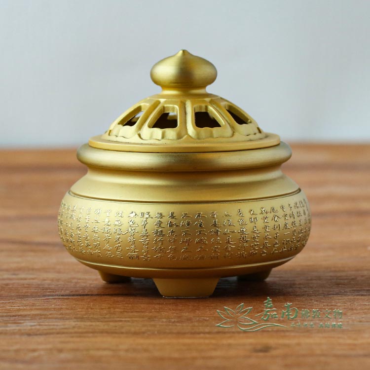 全黃珍珠小三足心經爐|精雕般若心經・佛字蓮花紋 供佛祈福