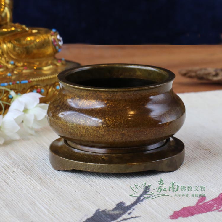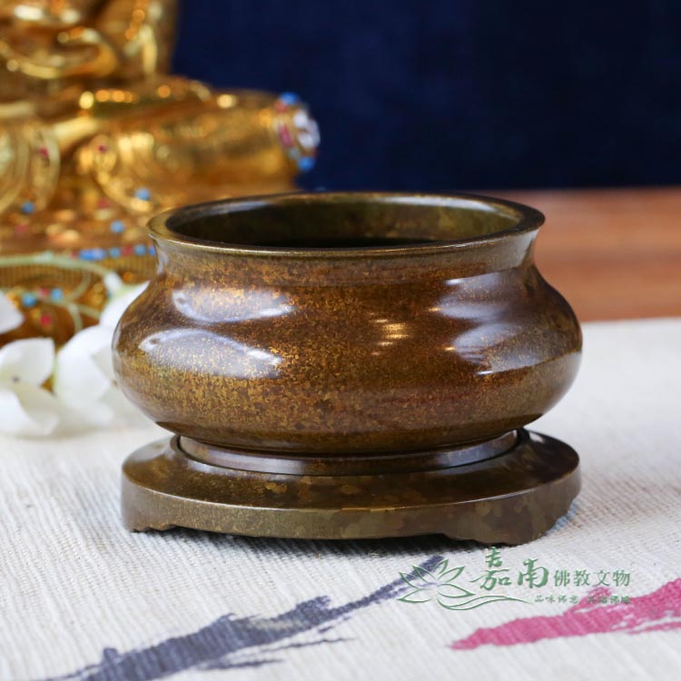 - 「九品3寸仿古雪花宣德爐」承襲明代宣德爐經典造型,線條圓潤流暢,簡約大氣。爐身採特殊「仿古雪花」工藝,如漫天飛雪般斑駁金點,又似古銅歷經歲月的包漿皮殼。搭配專屬底座,莊嚴穩重,是供佛、品香、賞玩的上乘之選。