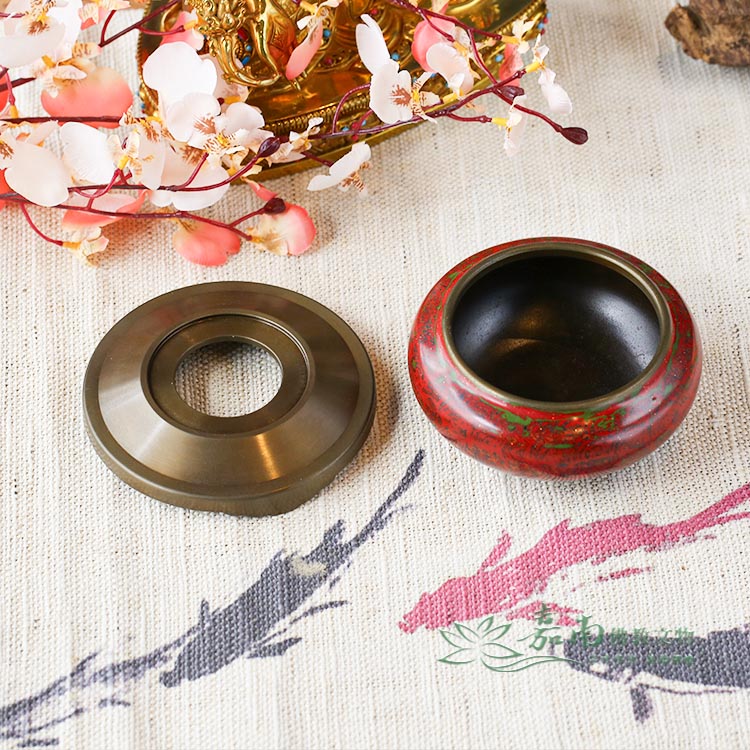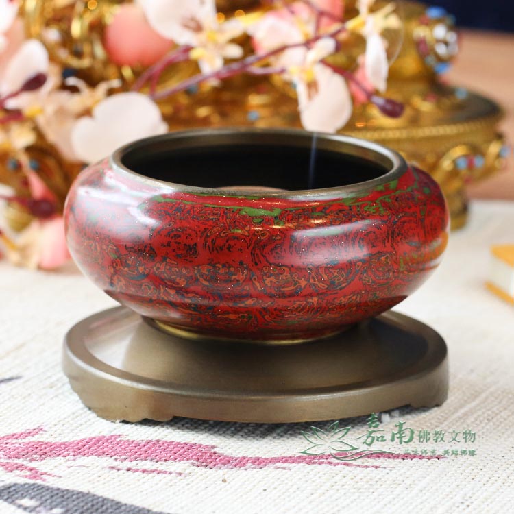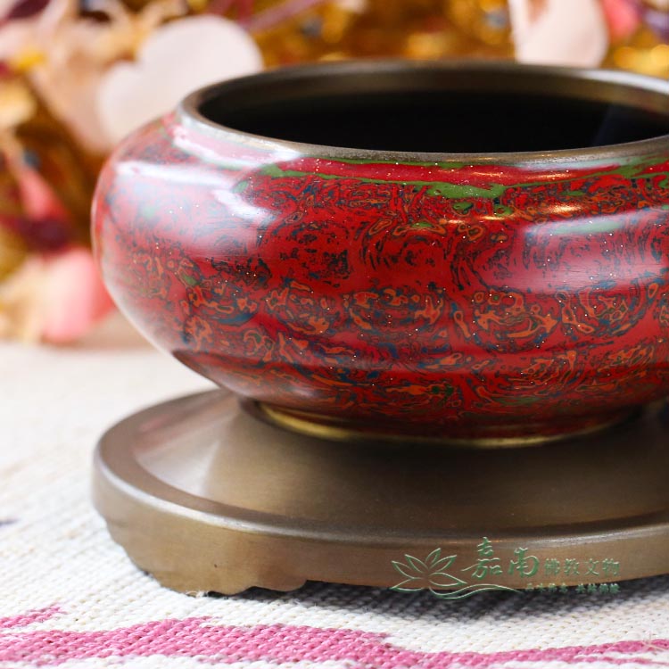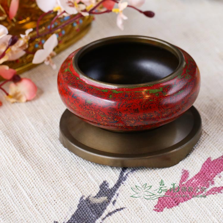 九品3寸金玉滿堂銅缽(含底座)|紅綠金彩繪・居家財位,焚香薰香皆宜