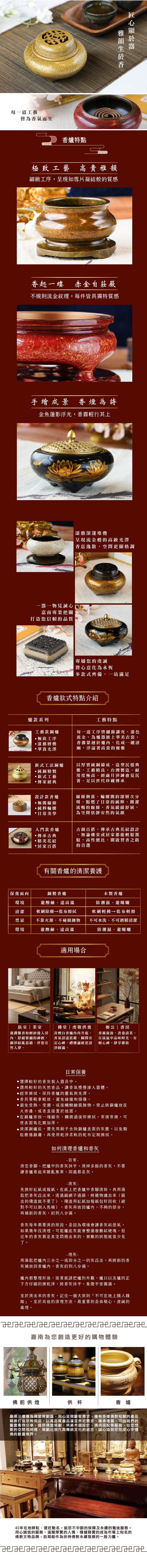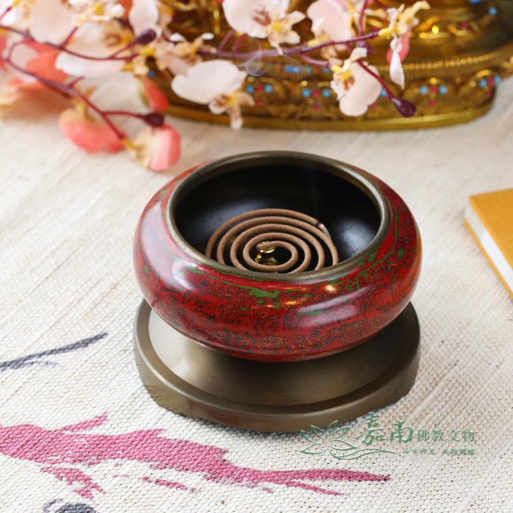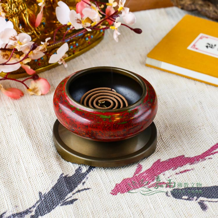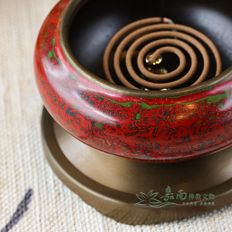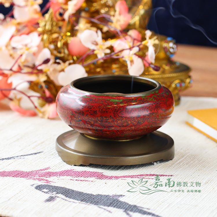- 金玉滿堂,富貴綿長 「九品3寸金玉滿堂銅缽」突破傳統單色銅爐,以朱紅為底,繪以翠綠與金彩,每一道工序皆細節講究,漆色流金,如同為銅爐披上一件華美衣裳。色彩斑斕而不俗豔,宛如精緻琺瑯藝術品。名稱寓意「金玉滿堂」,置於家中財位或佛堂,不僅是薰香器具,更象徵招財納福、興旺家運的吉祥擺件。