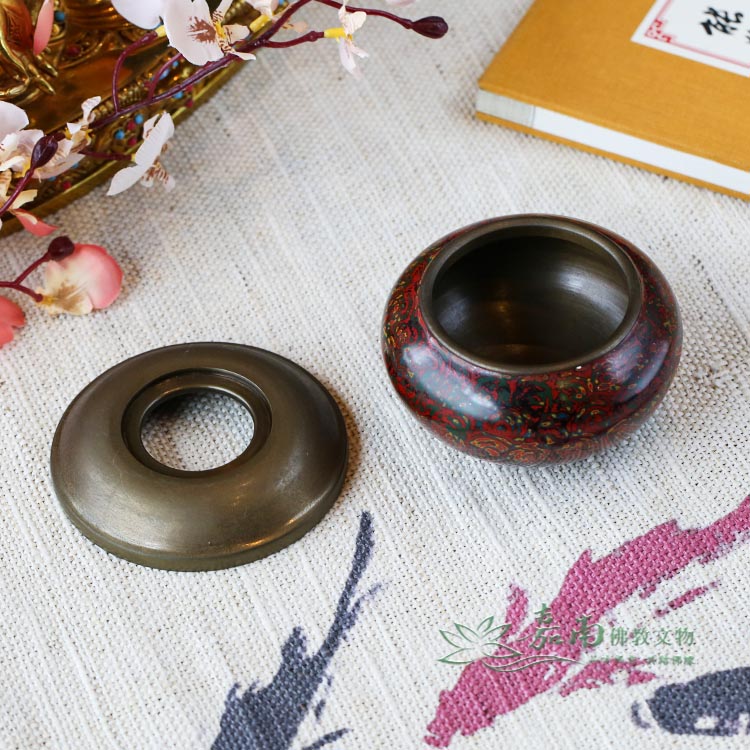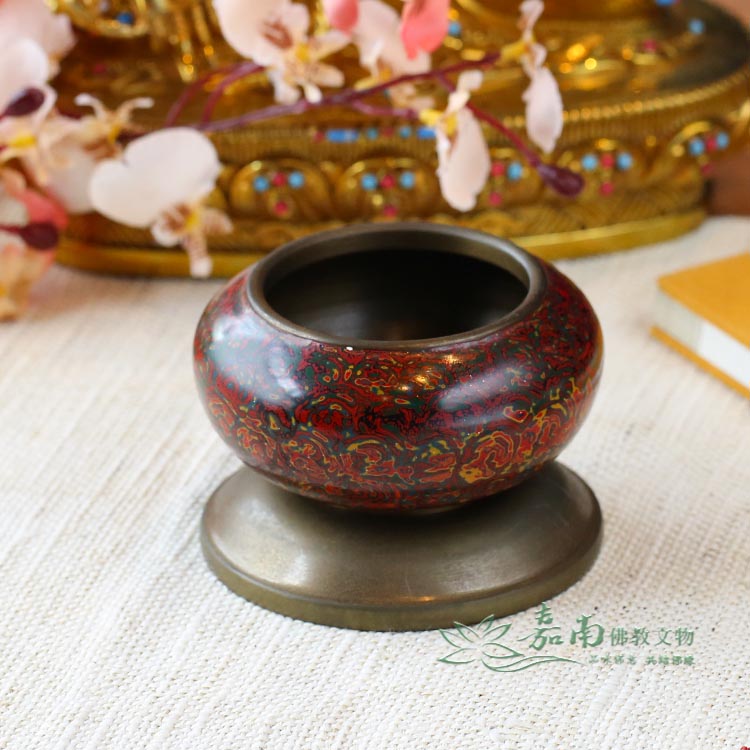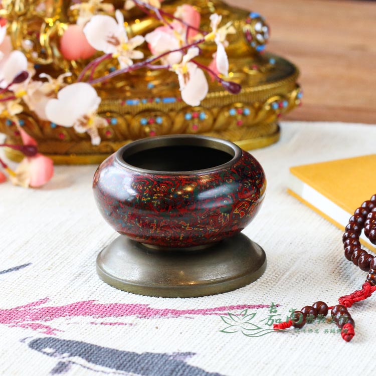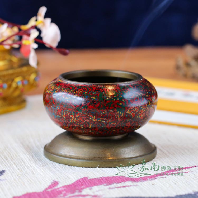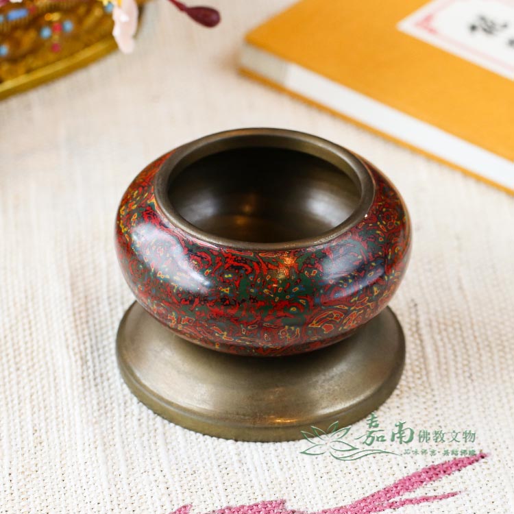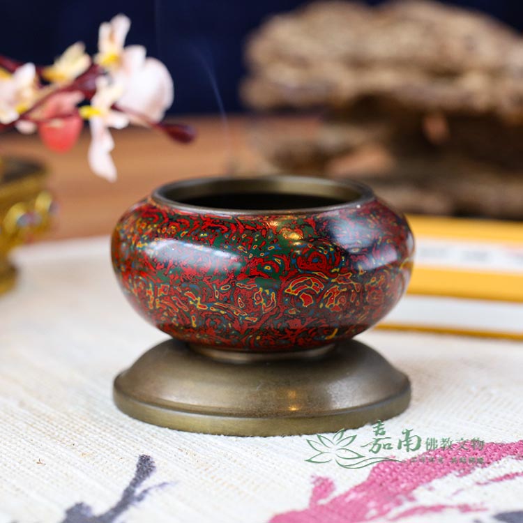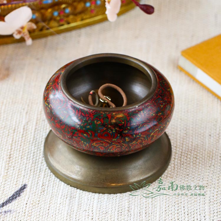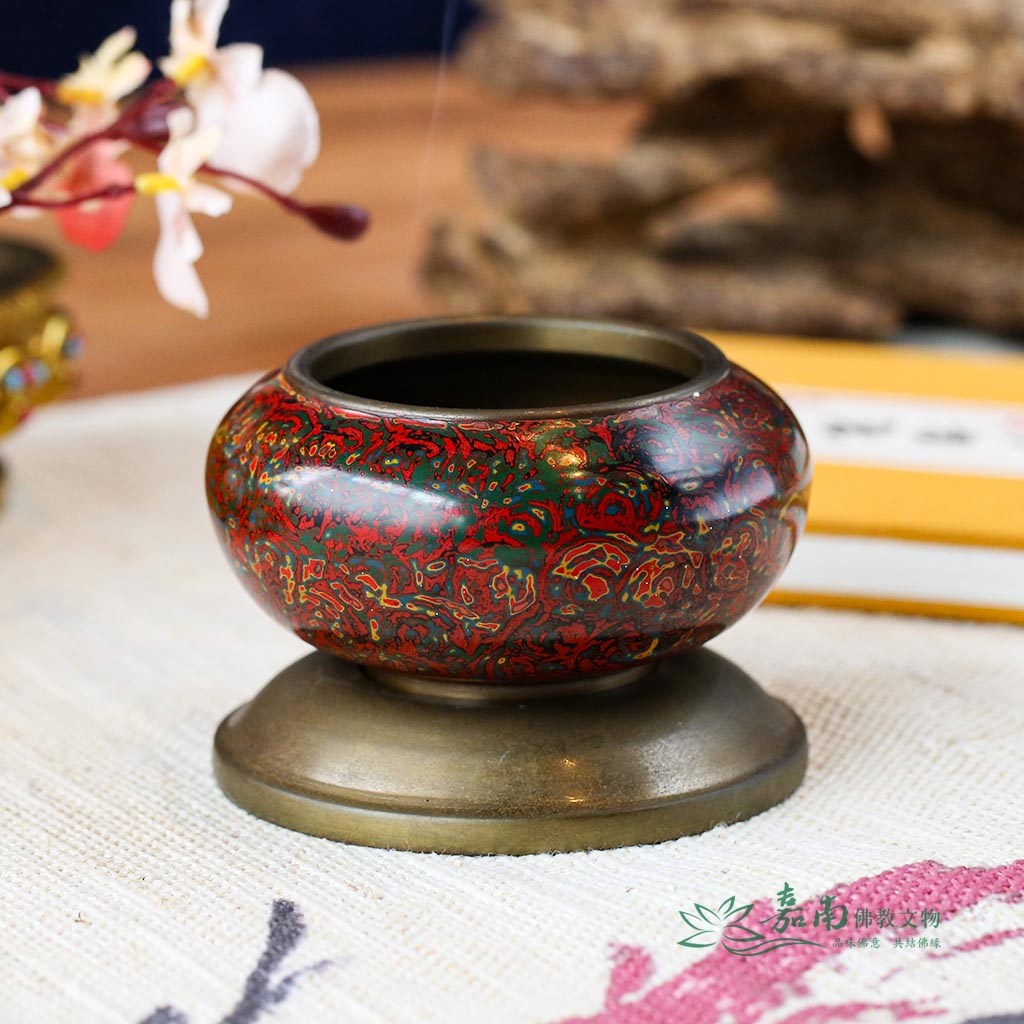 九品2寸金玉滿堂銅缽(含底座)|紅綠金彩繪・居家財位,焚香薰香皆宜