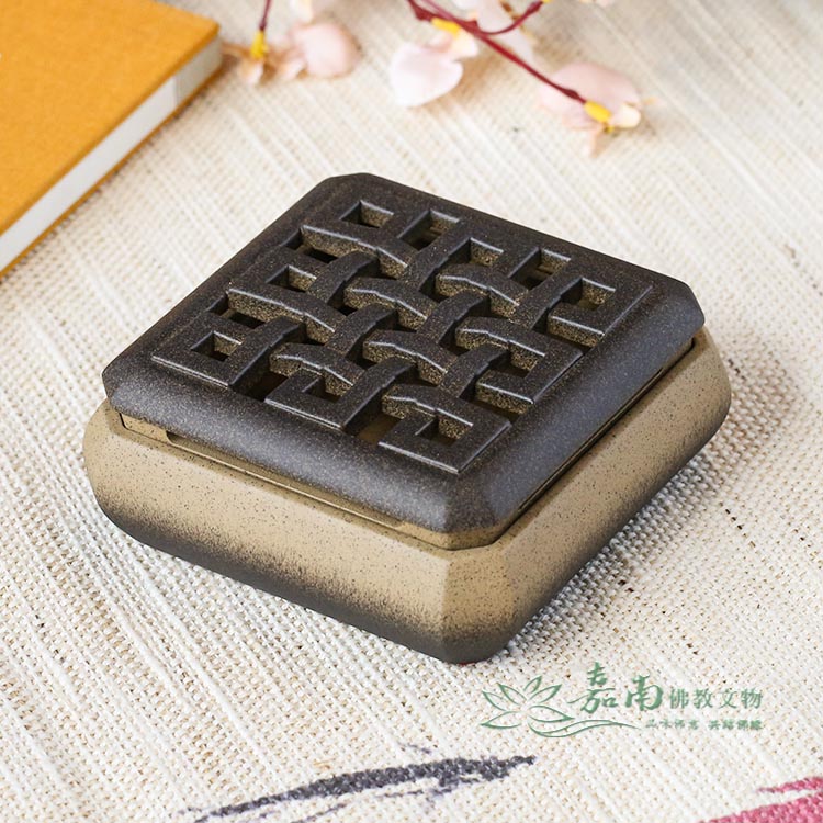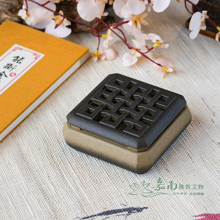 礦彩吉祥結淨爐-仿石粗陶質感 ,無盡結守護