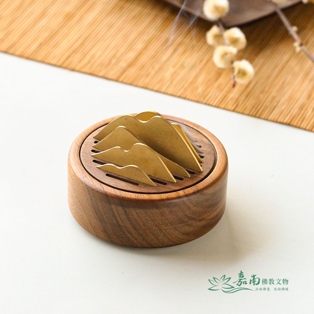 • 爐蓋以黃銅精雕成山巒起伏的造型,輪廓分明、層次立體。點香時,煙霧從山谷間緩緩溢出,宛如雲海流動,呈現東方山水畫般的動態美。