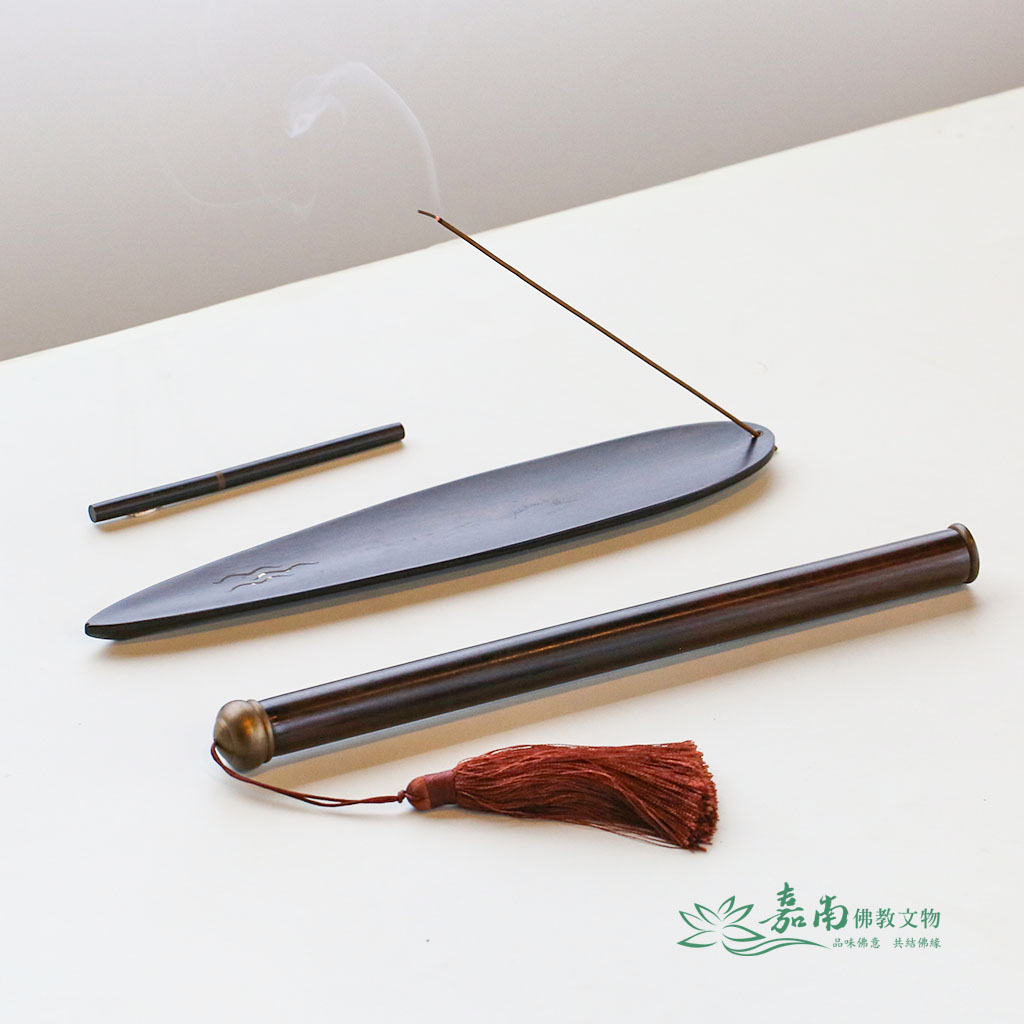 規格 │ 紫光檀木扁舟香座x1(不含香) 流蘇收納香管x1 香插x1