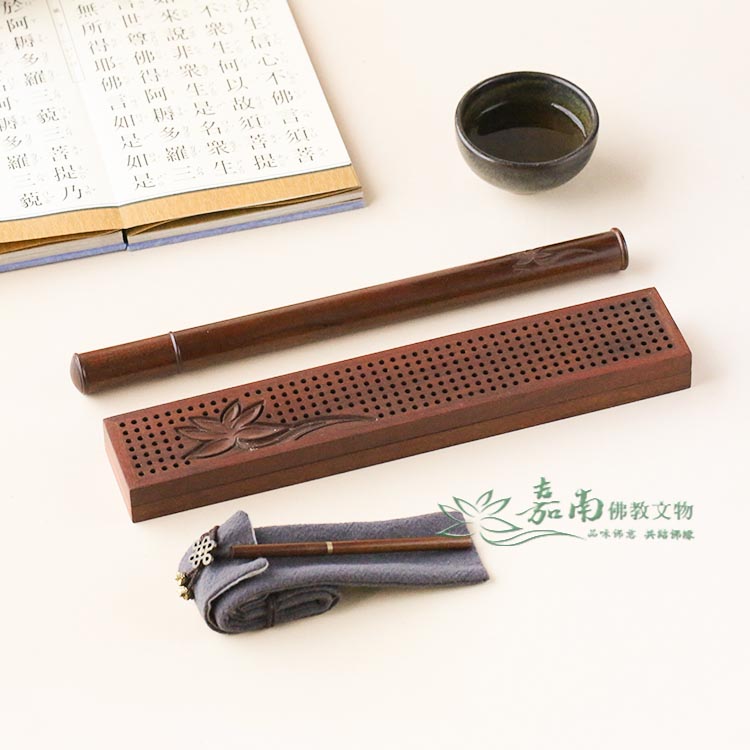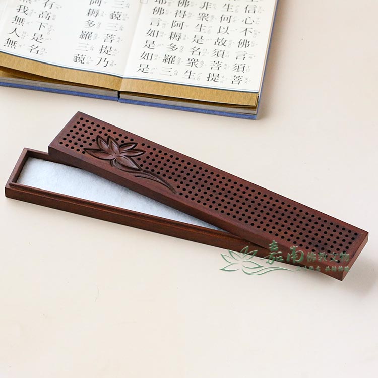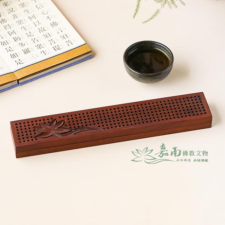 • 九品蓮花雕寓意殊勝 盒身精雕九品蓮花圖騰,線條流暢優美。燃香時,煙雲自鏤空處緩緩升起,如蓮花步步生香。寓意修行圓滿,花開見佛,提醒行者保持內心清淨。
