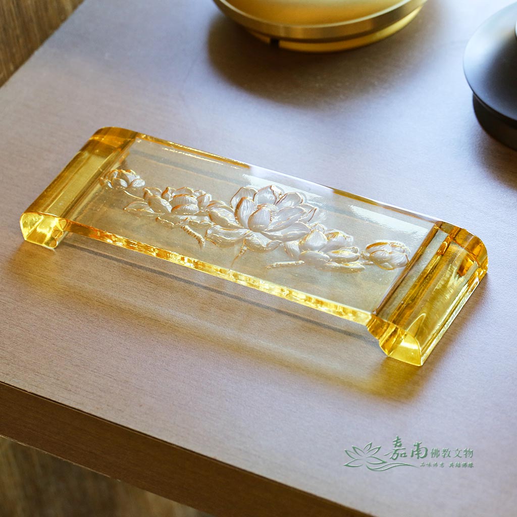 琉璃蓮花供杯台-琥珀色|立體蓮花雕刻,佛堂配色百搭