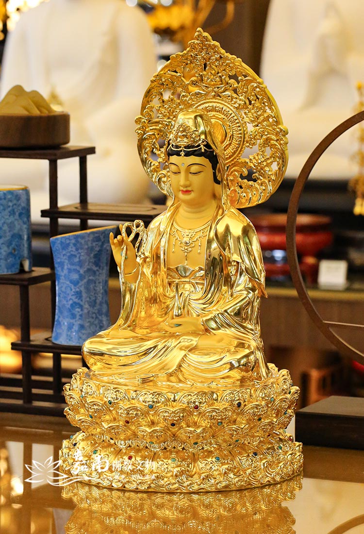 1尺貼金蓮座觀世音- 莊嚴法相・慈悲守護|居家佛堂供奉首選