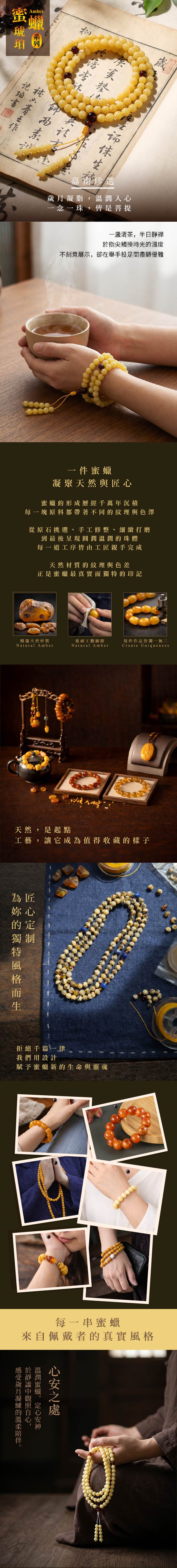 - 穿越千年時空凝結成了深沉、醇厚、晶瑩剔透的琥珀蜜蠟。每一顆琥珀,都有獨特的色彩和紋理,就像是個充滿神秘和美麗的獨立世界 ,這個自然寶藏不僅僅是一種寶石,更是佛教哲學的完美體現,感受著仿佛佛教智者的化身,以琉璃般晶瑩的光芒,傳遞佛教的真理和智慧。