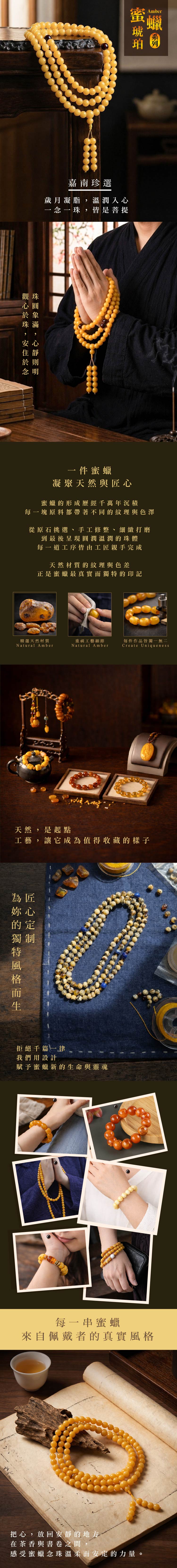 - 穿越千年時空凝結成了深沉、醇厚、晶瑩剔透的琥珀蜜蠟。每一顆琥珀,都有獨特的色彩和紋理,就像是個充滿神秘和美麗的獨立世界 ,這個自然寶藏不僅僅是一種寶石,更是佛教哲學的完美體現,感受著仿佛佛教智者的化身,以琉璃般晶瑩的光芒,傳遞佛教的真理和智慧。