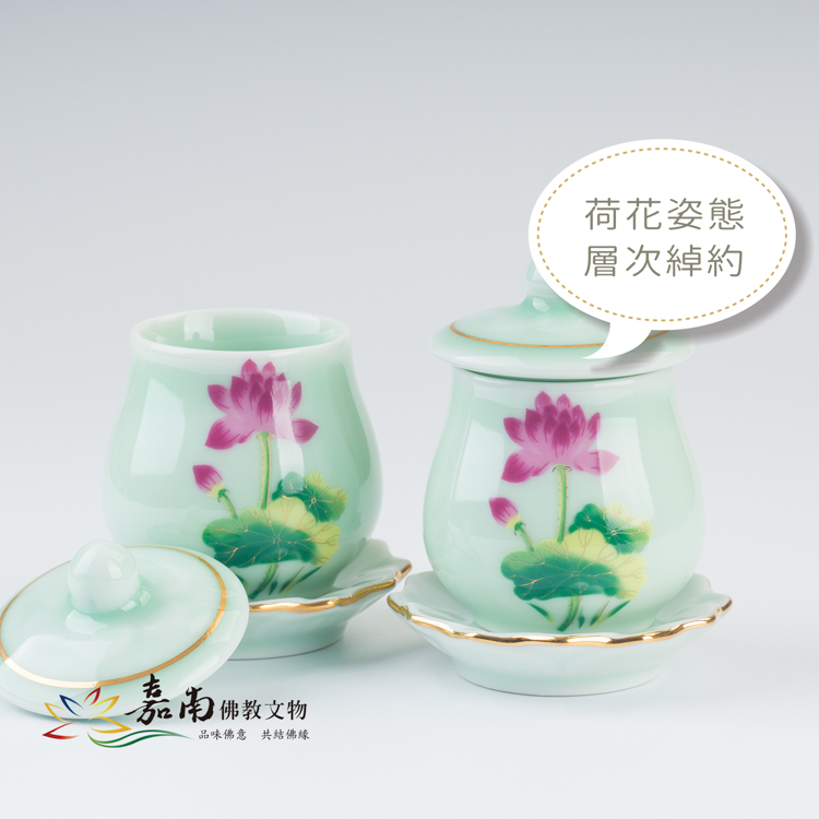彩荷花供杯(青)