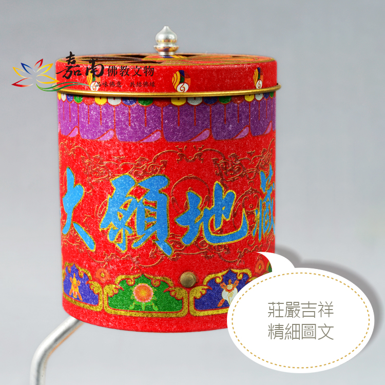 說明 │ 佛經說利用地、水、火、風等法,使經輪轉動,功德無量。轉動經輪,使眾生解脫,為自己帶來好運。