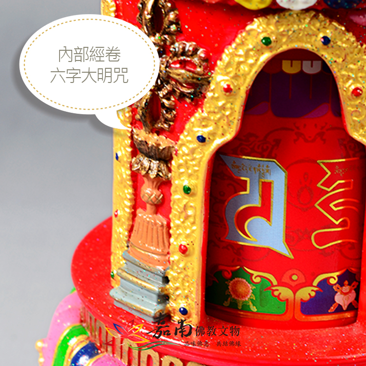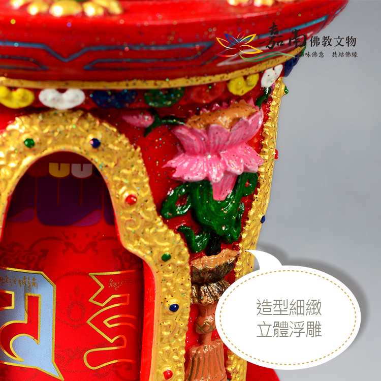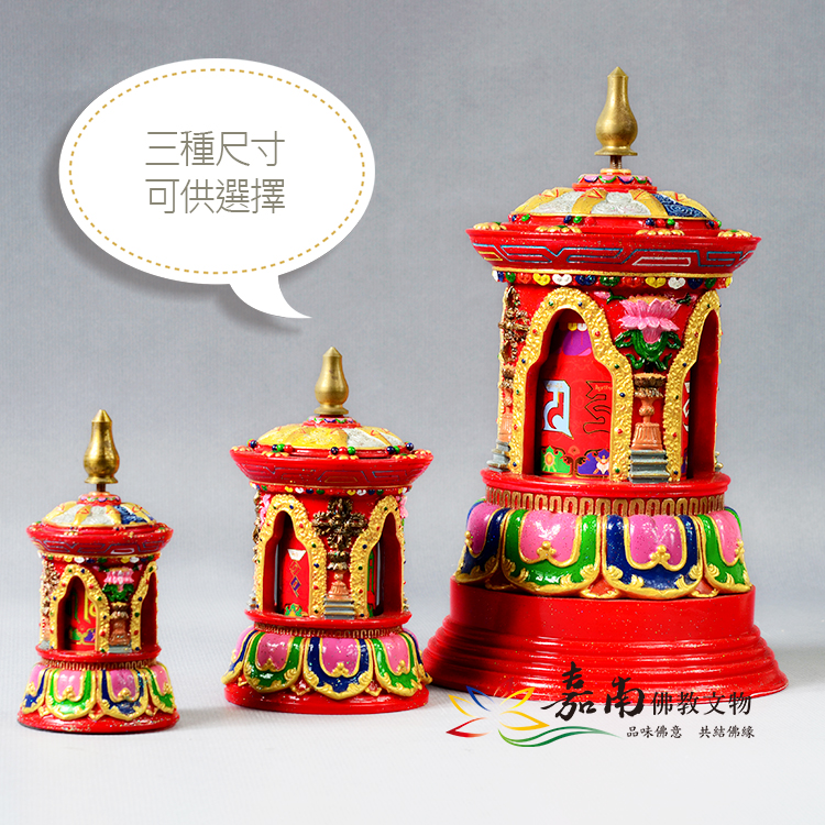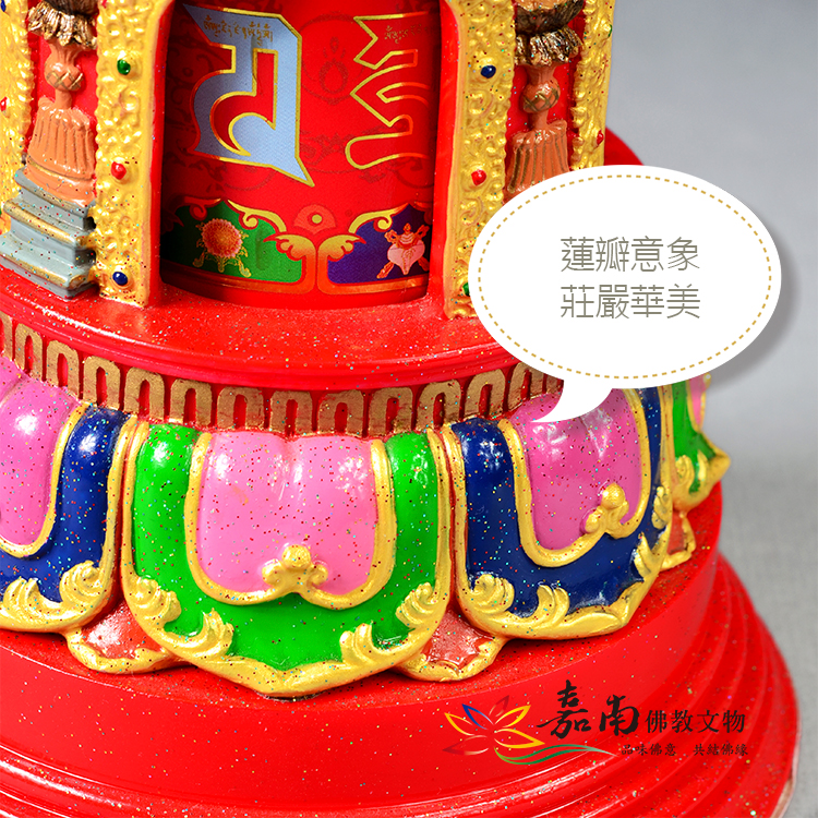 說明 │ 佛經說利用地、水、火、風等法,使經輪轉動,功德無量。轉動經輪,使眾生解脫,為自己帶來好運。