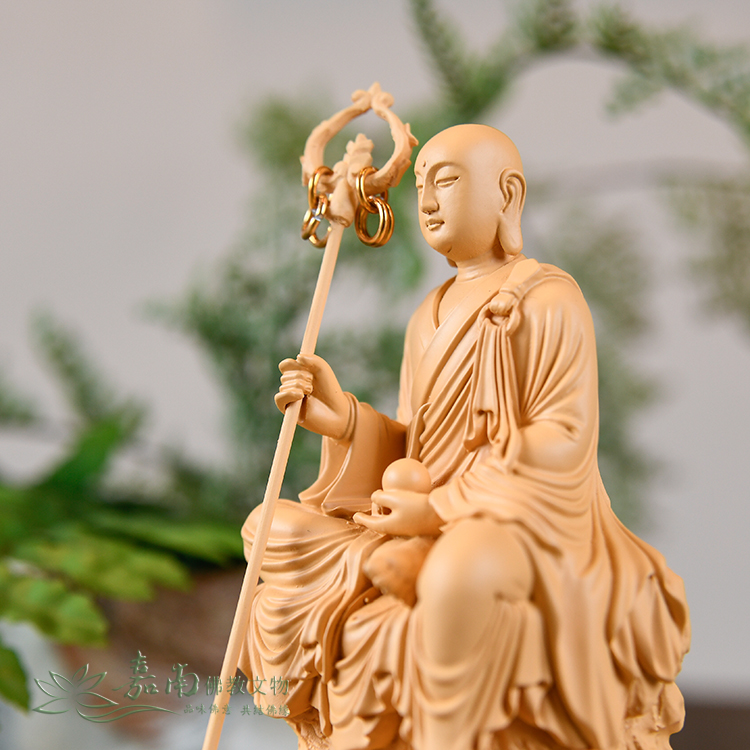 地藏王菩薩*僧-原木色波麗佛像(3寸5)