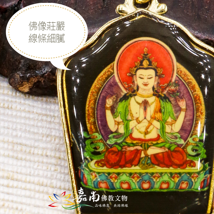 說明 │ 佛牌項鍊,分成藥師佛、文殊菩薩、四臂觀音、綠度母,此商品獨家販賣,背面有英文介紹,手工精美。