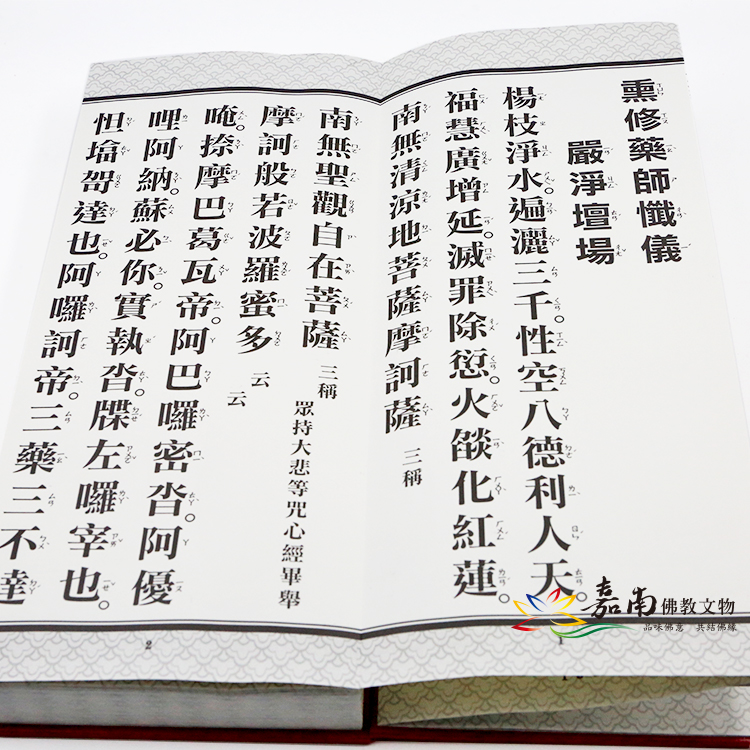 《金剛寶懺》,全名為《大乘金剛般若寶懺》,簡稱《金剛懺》,是依據《金剛般若波羅蜜經》所行的懺法。《金剛寶懺》藉著禮懺的方式,以如金剛一般無堅不摧、無障不破的般若智慧,破除無明煩惱,斬斷芸芸眾生累世多劫的虛妄執著。 《慈悲藥師寶懺》又稱《消災延壽藥師寶懺》,是依據《藥師經》為根本,以懺悔罪障為主要的修行法門,和增福延壽為旨歸。