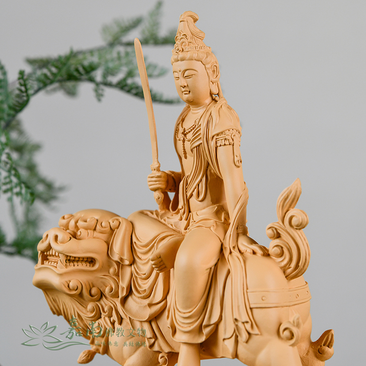 文殊菩薩-原木色波麗佛像(6.6寸)