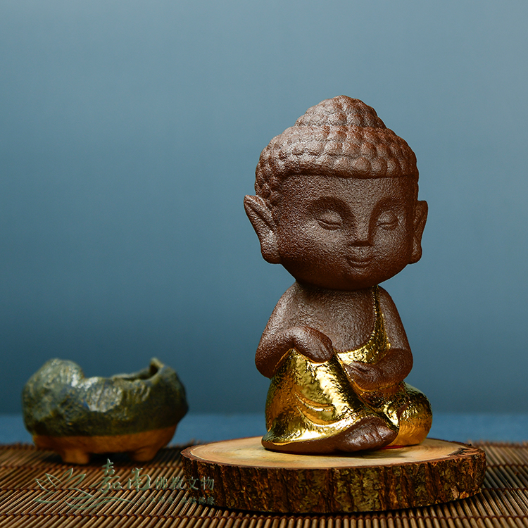 水天需雕塑佛像│定慧-清心小菩薩 含底座(黃金版)