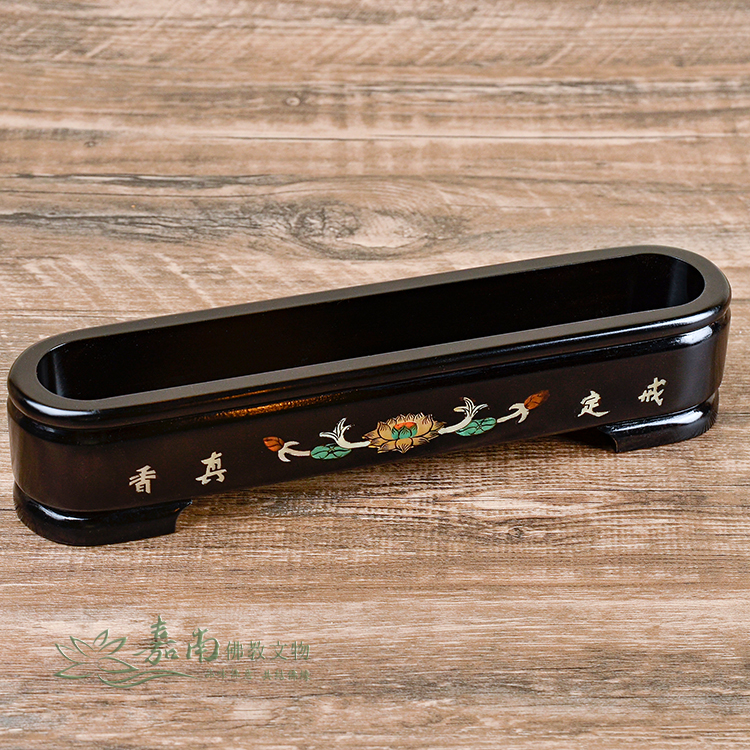 臥香爐,爐身橫長、深度淺、能臥放線香。內部常有香插孔或者防火棉,方便臥香燃點。否則需平鋪香灰助益燃燒。