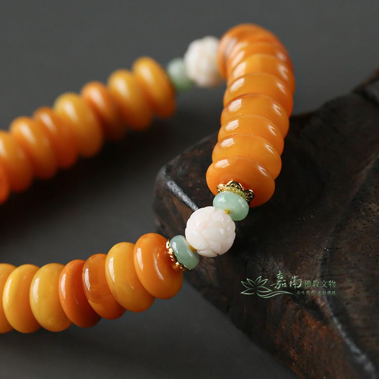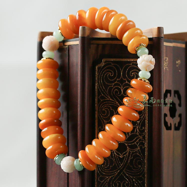 - 穿越千年時空凝結成了深沉、醇厚、晶瑩剔透的琥珀蜜蠟。每一顆琥珀,都有獨特的色彩和紋理,就像是個充滿神秘和美麗的獨立世界 ,這個自然寶藏不僅僅是一種寶石,更是佛教哲學的完美體現,感受著仿佛佛教智者的化身,以琉璃般晶瑩的光芒,傳遞佛教的真理和智慧。