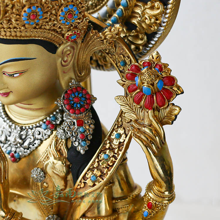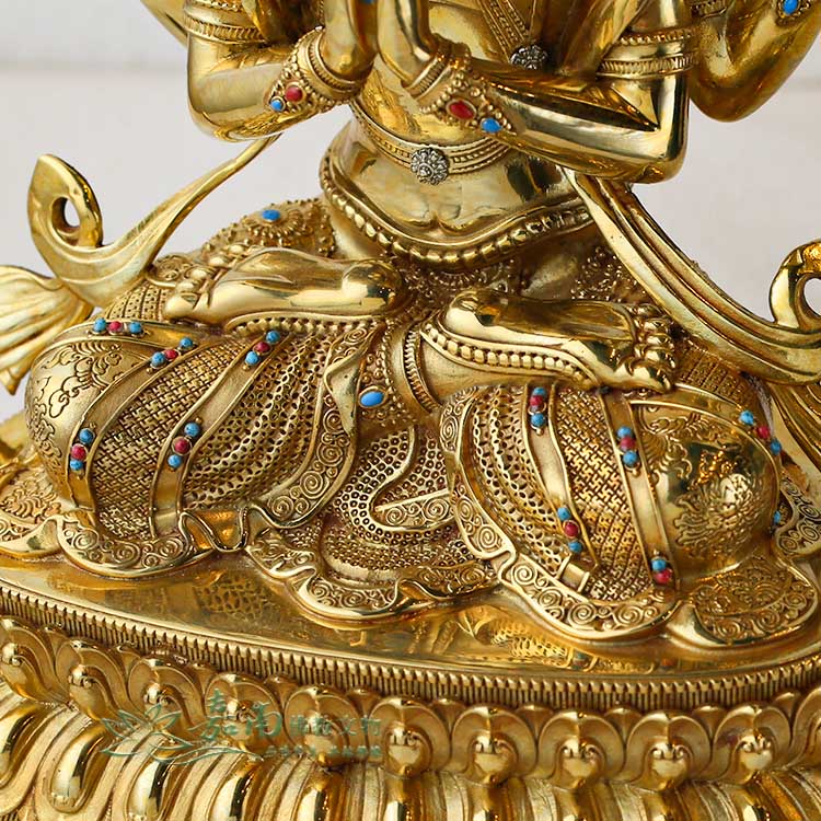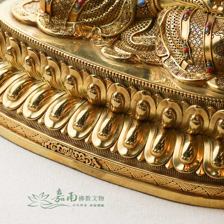 - 精雕鎏金密宗佛像取材厚重精銅鑄造佛身,衣袖上的花紋優雅,裙襬折疊流暢,鑲寶的點綴使其更加華麗尊貴,散發著濃厚的佛典氛圍,手感厚實的黃銅質地,不僅帶給您觸覺上的舒適感,更如同心靈的輕觸,揭示了密宗佛理的深奧