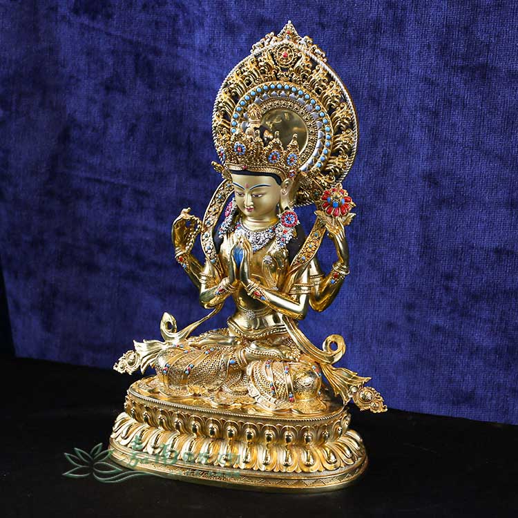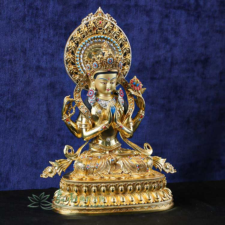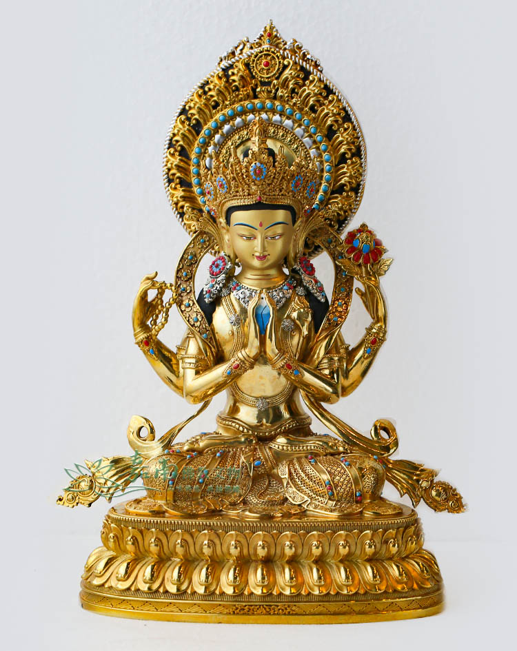 四臂觀音-精雕鎏金 (27cm)