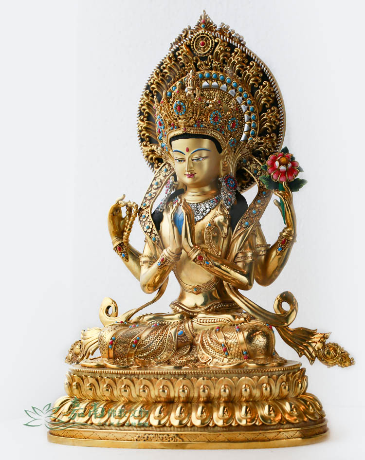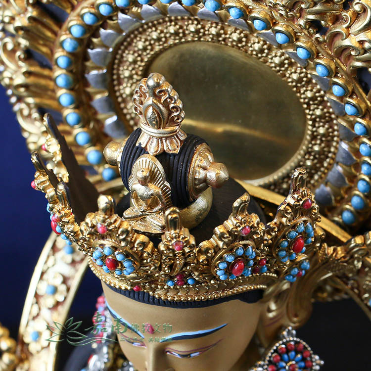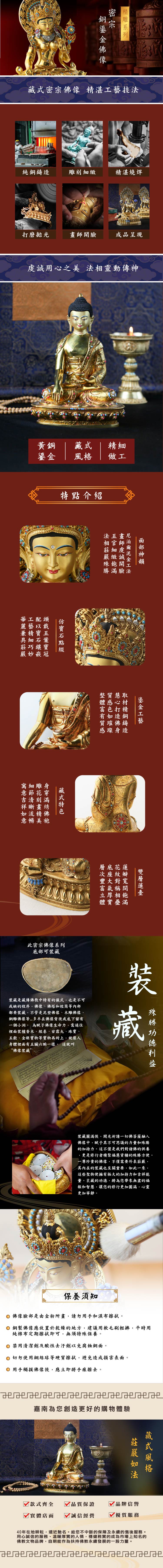 - 色澤獨具特色,光感獨特而精美,彷彿佛法的智慧之光在其中閃耀。這不僅是外觀的美感,更象徵著光明與智慧的結合。精湛的雕刻工藝赋予了佛像細緻而豐富的層次,搭配著藏式風格的吉祥雕刻,使整體造型繁複而不雜,象徵著佛法的教義,每一處的雕刻都深植於佛理的思想,彰顯了密宗佛法的智慧與慈悲。