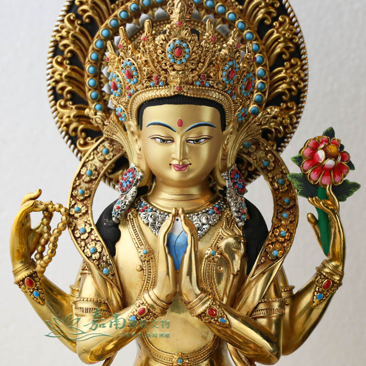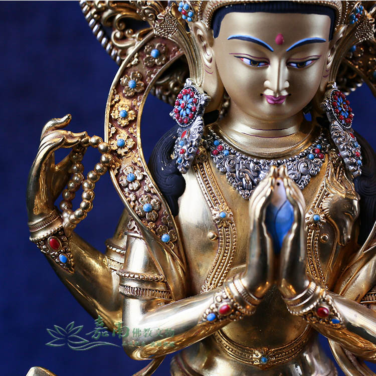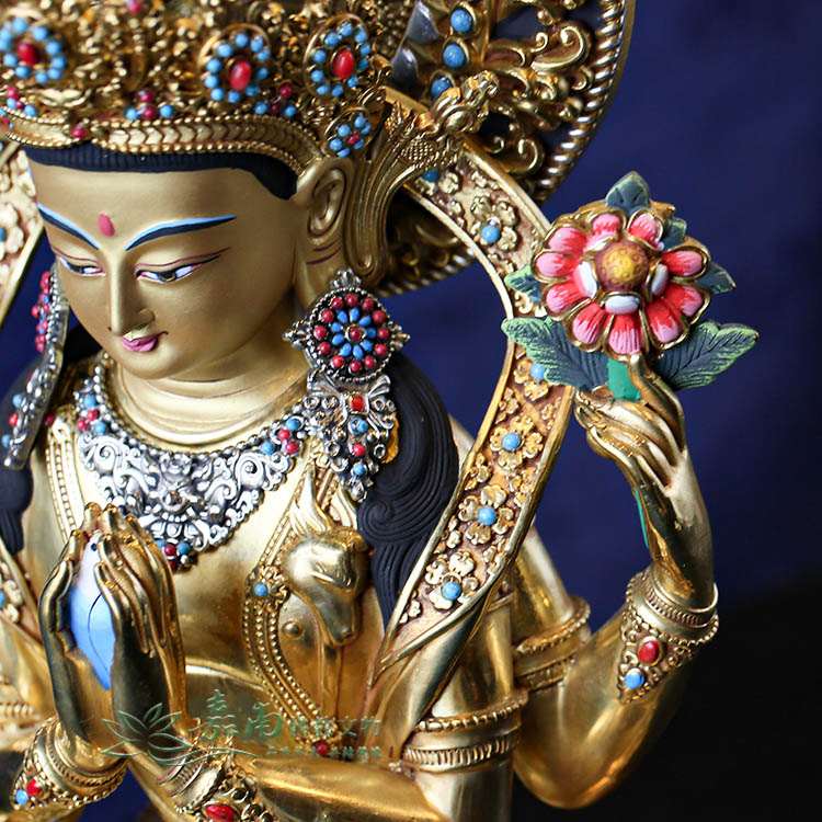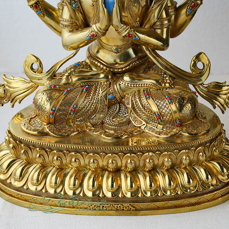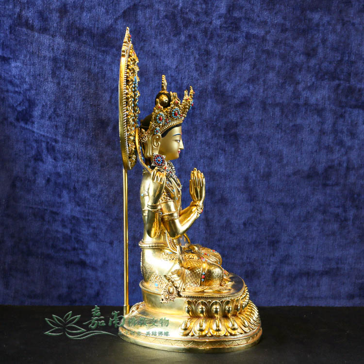 - 精雕鎏金密宗佛像取材厚重精銅鑄造佛身,衣袖上的花紋優雅,裙襬折疊流暢,鑲寶的點綴使其更加華麗尊貴,散發著濃厚的佛典氛圍,手感厚實的黃銅質地,不僅帶給您觸覺上的舒適感,更如同心靈的輕觸,揭示了密宗佛理的深奧
