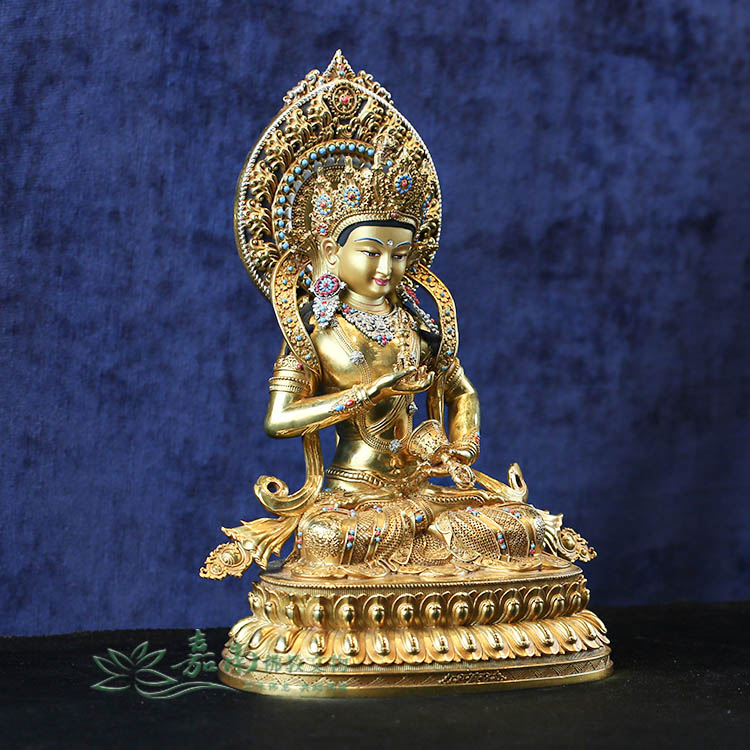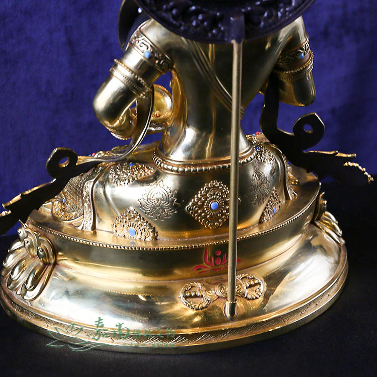 - 精雕鎏金密宗佛像取材厚重精銅鑄造佛身,衣袖上的花紋優雅,裙襬折疊流暢,鑲寶的點綴使其更加華麗尊貴,散發著濃厚的佛典氛圍,手感厚實的黃銅質地,不僅帶給您觸覺上的舒適感,更如同心靈的輕觸,揭示了密宗佛理的深奧