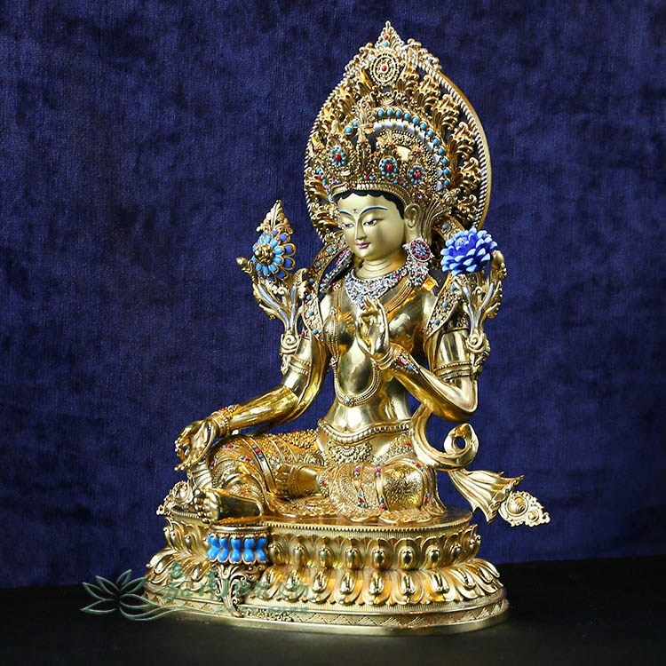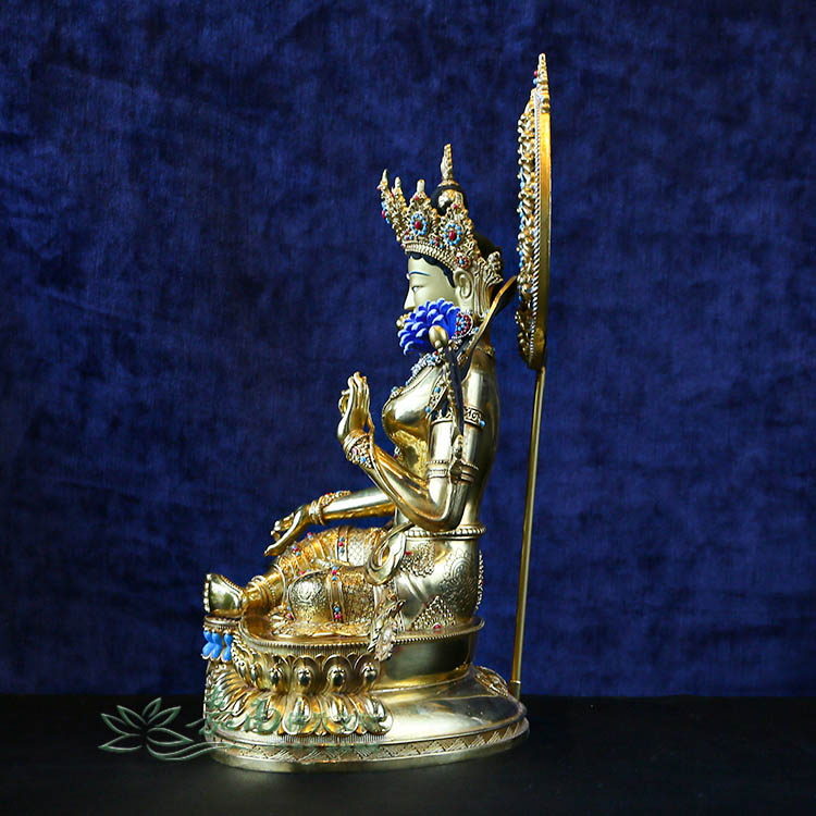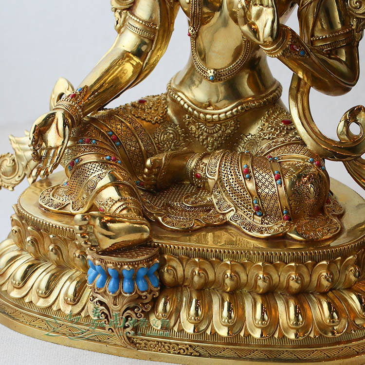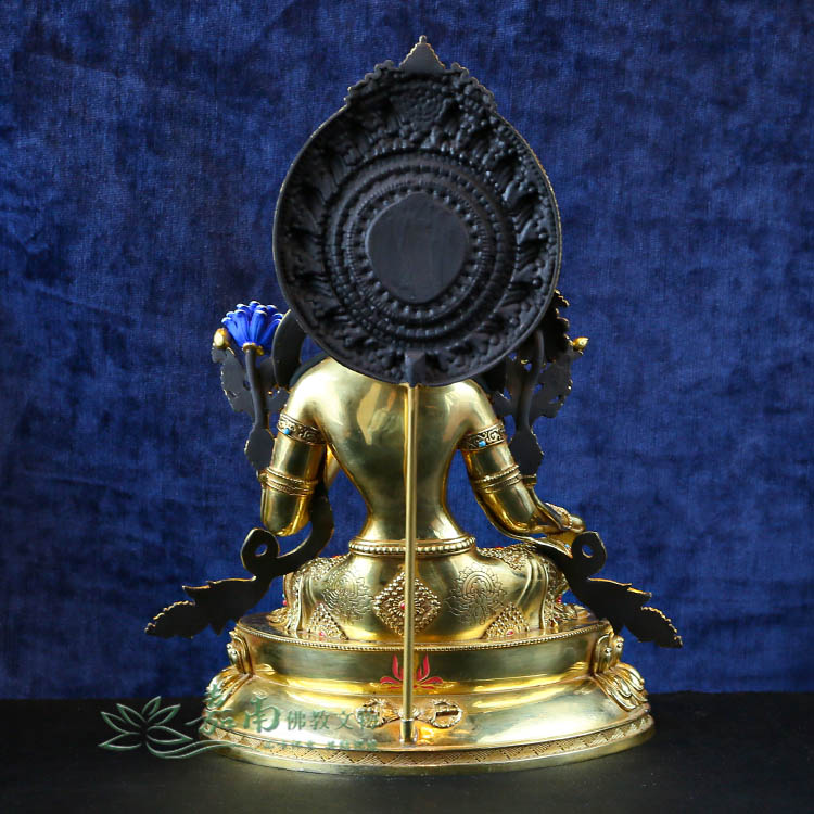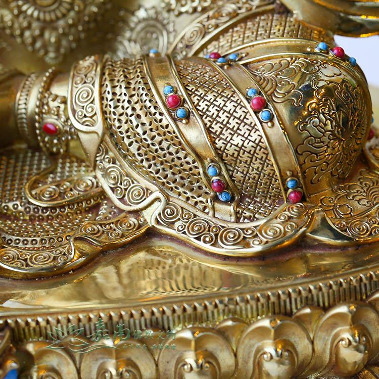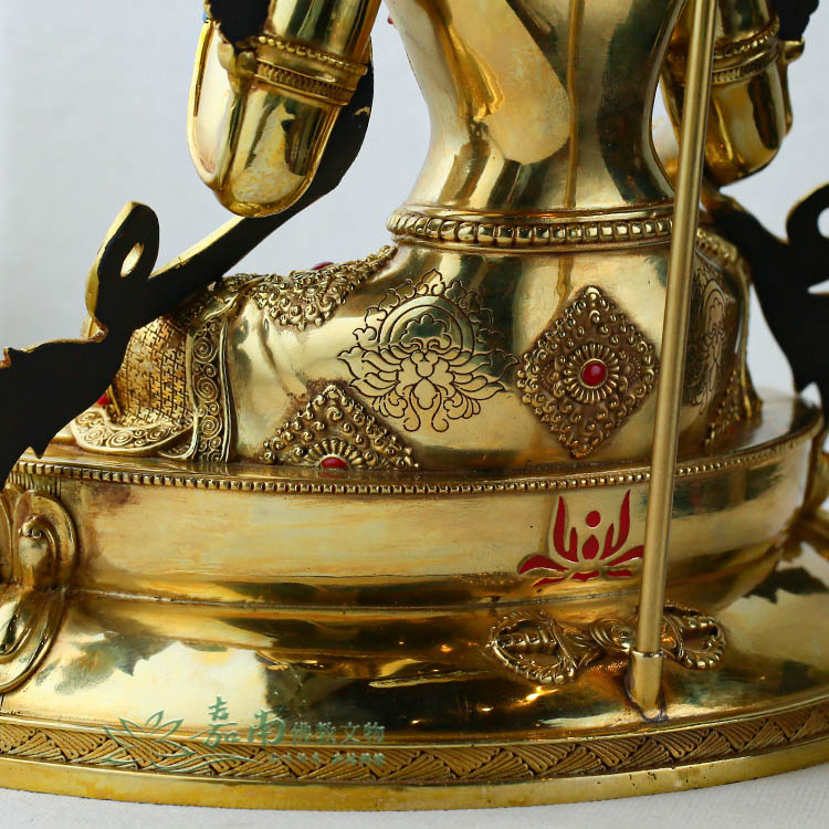 - 精雕鎏金密宗佛像取材厚重精銅鑄造佛身,衣袖上的花紋優雅,裙襬折疊流暢,鑲寶的點綴使其更加華麗尊貴,散發著濃厚的佛典氛圍,手感厚實的黃銅質地,不僅帶給您觸覺上的舒適感,更如同心靈的輕觸,揭示了密宗佛理的深奧