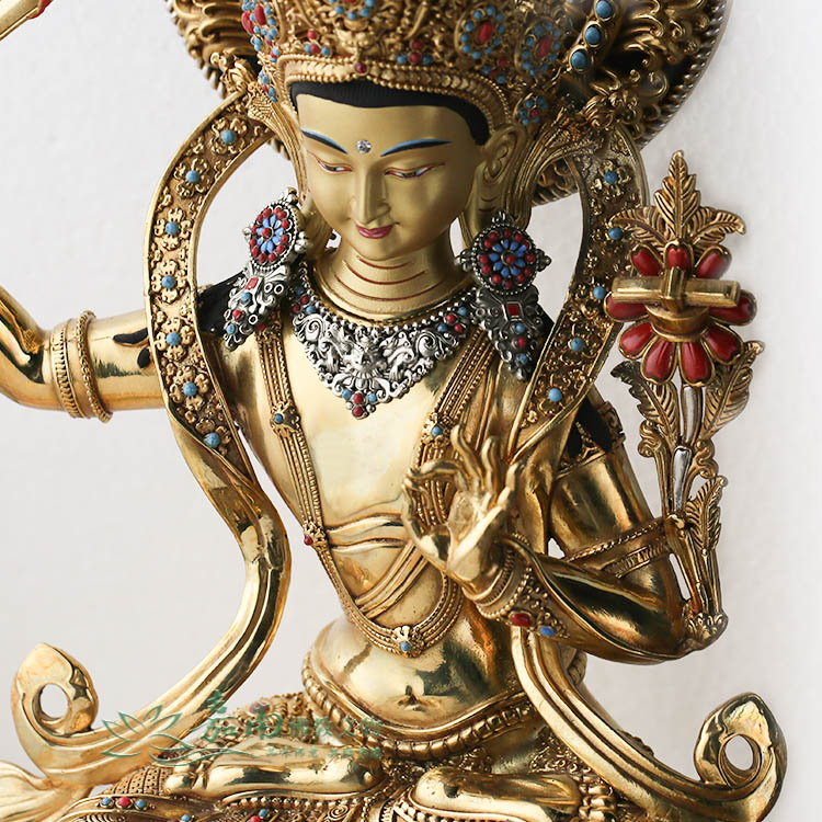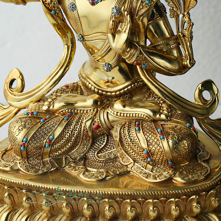 - 精雕鎏金密宗佛像取材厚重精銅鑄造佛身,衣袖上的花紋優雅,裙襬折疊流暢,鑲寶的點綴使其更加華麗尊貴,散發著濃厚的佛典氛圍,手感厚實的黃銅質地,不僅帶給您觸覺上的舒適感,更如同心靈的輕觸,揭示了密宗佛理的深奧