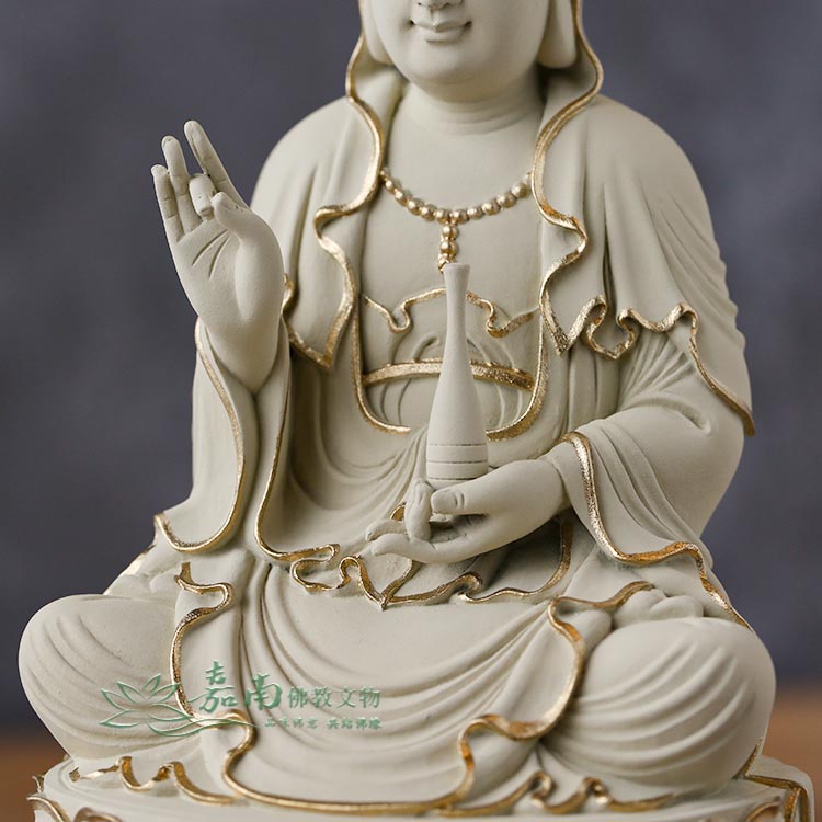 蓮花座觀世音 (23cm) 石金色-波麗佛像