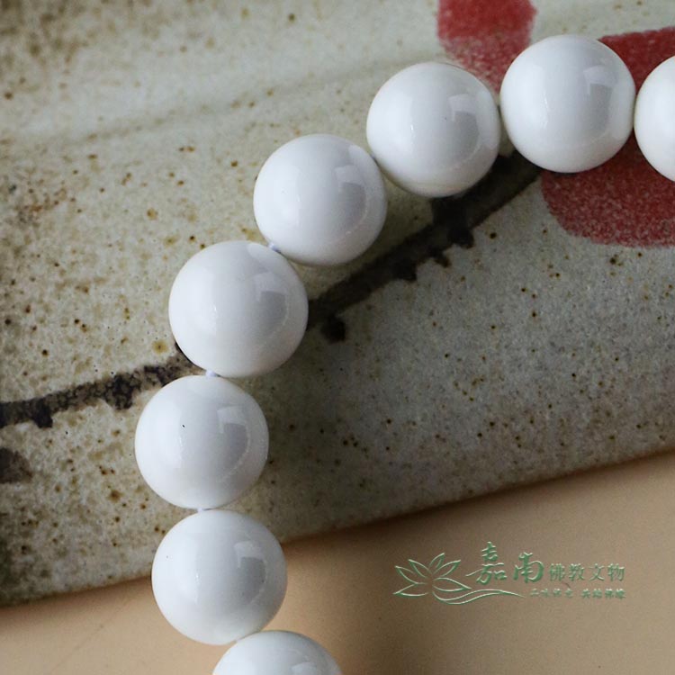 特色 │選用天然硨磲玉製成,圓珠設計,潔白如玉,象徵純淨與慈悲。佛教七寶之一,歷來被視為護身之石,適合修行人與信眾日常佩戴