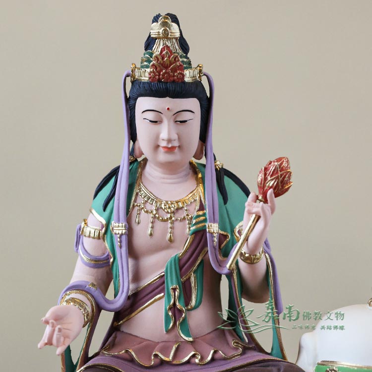 - 修福修慧・護持眾生|菩薩騎象穩坐,象徵智慧與行願,衣紋自然流暢,彩繪飽和明亮。無論供奉於佛堂、書房或辦公空間,皆能攝受人心、帶來行願圓滿之意。