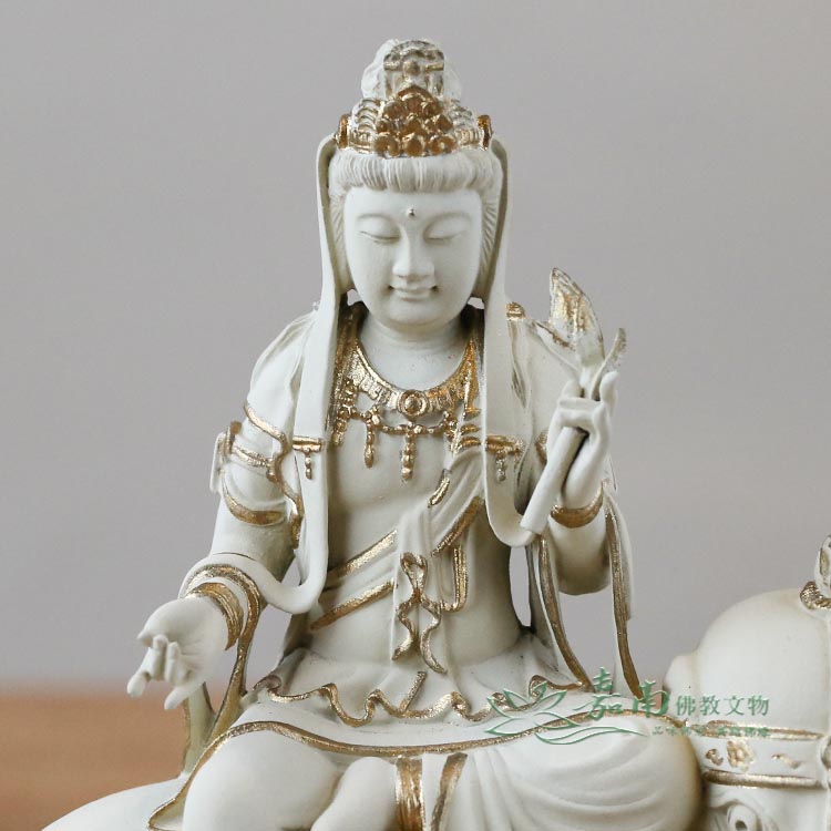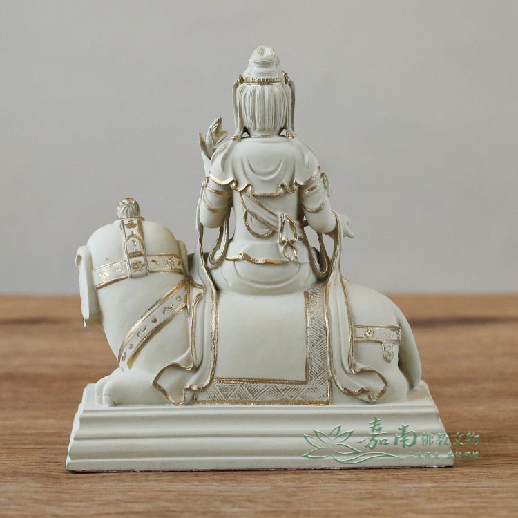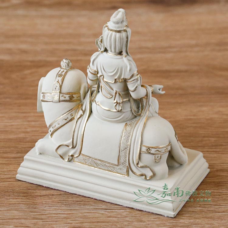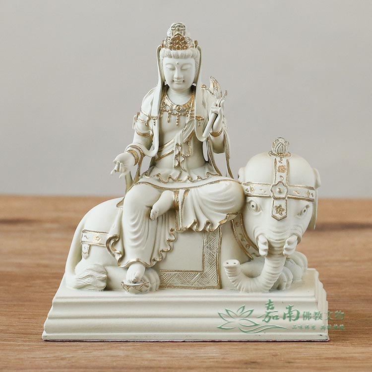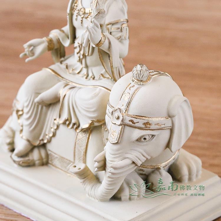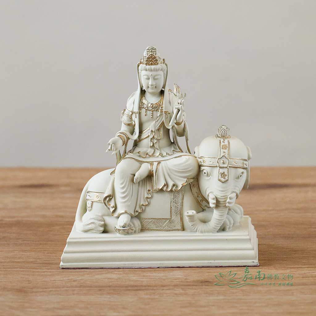 金色點綴恰到好處,在低調中展現尊貴,呈現修行者所重視的內斂、穩定與清明。 - 修福修慧・護持眾生|菩薩騎象穩坐,象徵智慧與行願,衣紋自然流暢,寓意修行者在生活中實踐佛法、步步踏實。