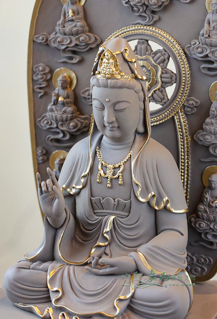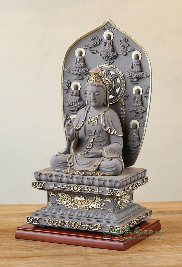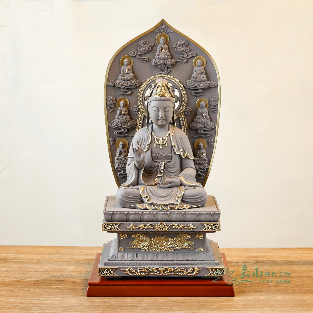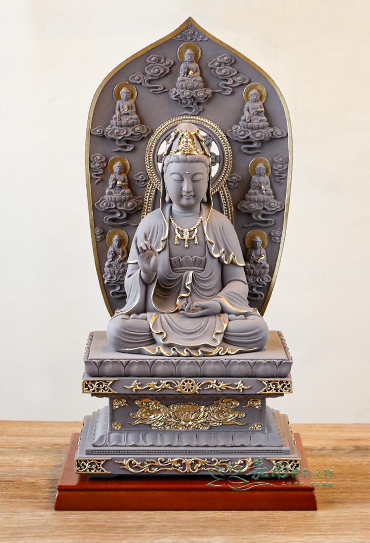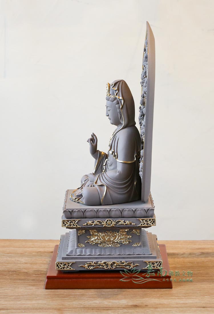 - 華貴描金・層次分明|於寶冠、瓔珞、法器等重點部位施以細緻描金,金石交映,莊嚴不俗,展現菩薩尊貴氣度。
